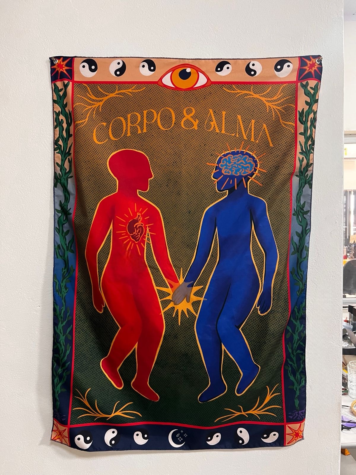 * Possui ilhós (círculo de metal para pendurar).