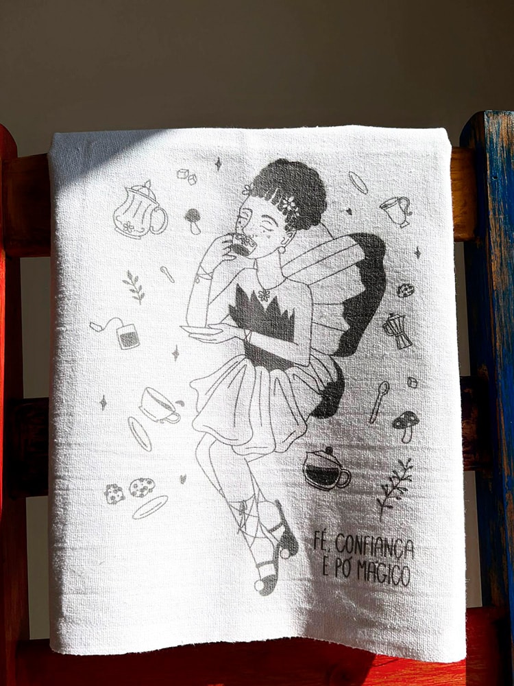 Entre cogumelos misteriosos e flores que dançam, este pano de prato traz a magia da natureza e a calma dos rituais ancestrais diretamente para o seu lar.