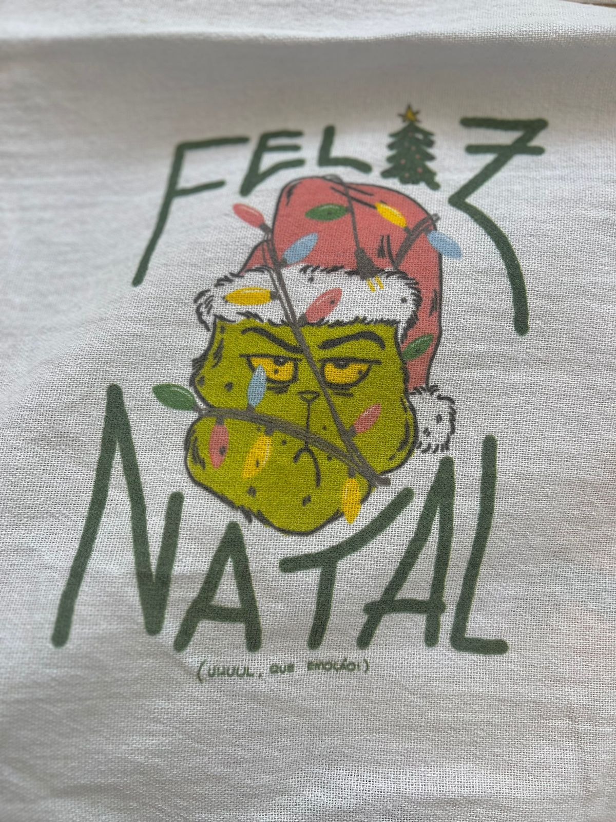 Sabemos que o Natal tem seus fãs e haters, mas se você é do time que prefere ficar em casa, longe das confusões festivas, esse pano de prato vai ser seu companheiro perfeito.