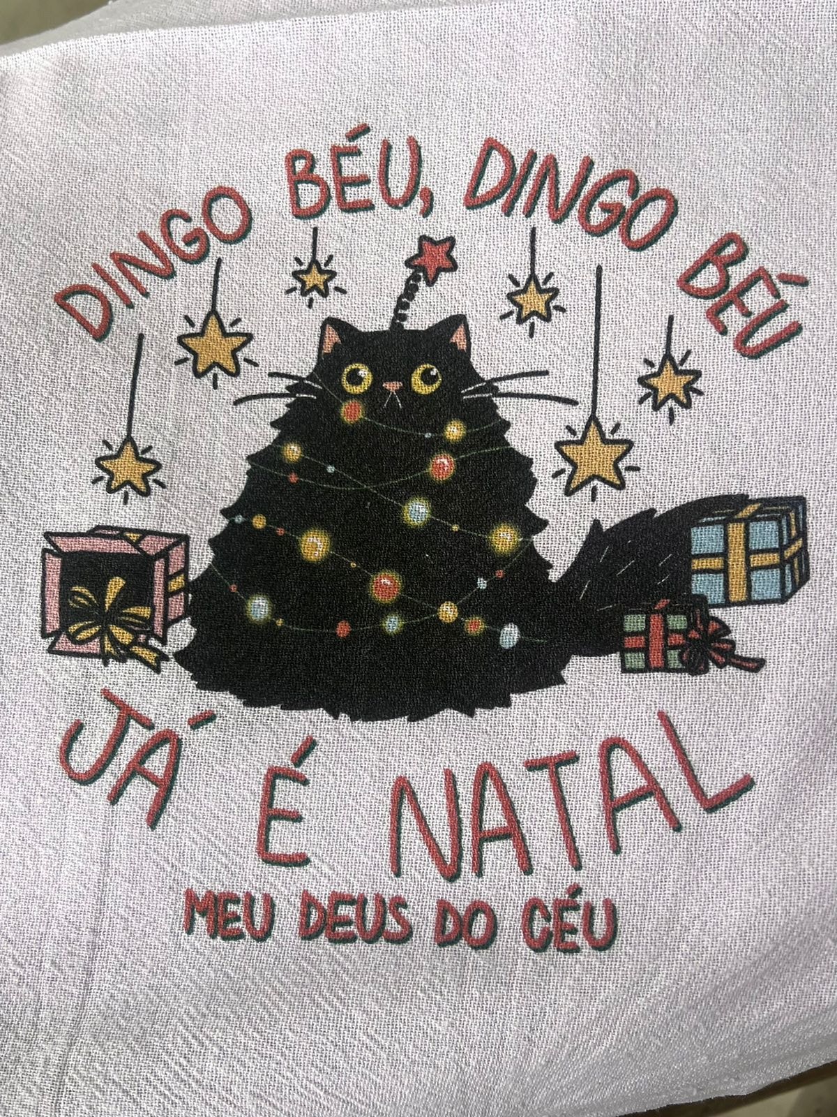 O gato já está em choque e a gente só pensa: Dingo bêu, dingo bêu! Já é Natal?! Meu Deus do céu!