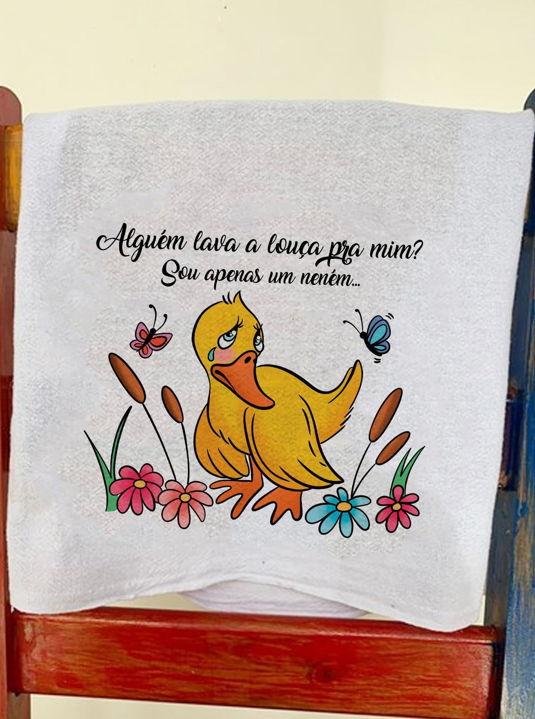 O pano de prato Pato Neném é um jeito singelo de deixar um recado para as pessoas que moram com você ou também para os convidados.