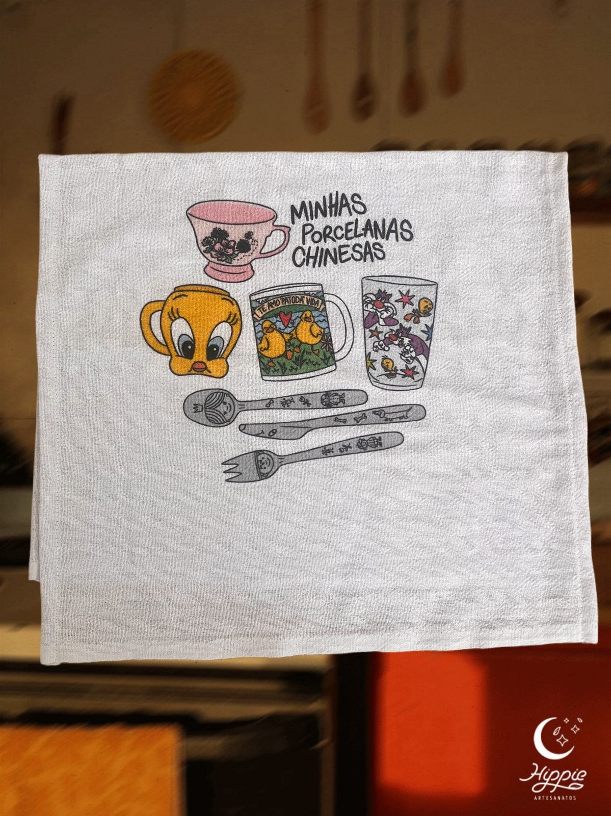 Sabe aquele toque fofo que muda o clima da cozinha? É esse pano aqui! A estampa apresenta desenhos infantis que vão direto no coração.