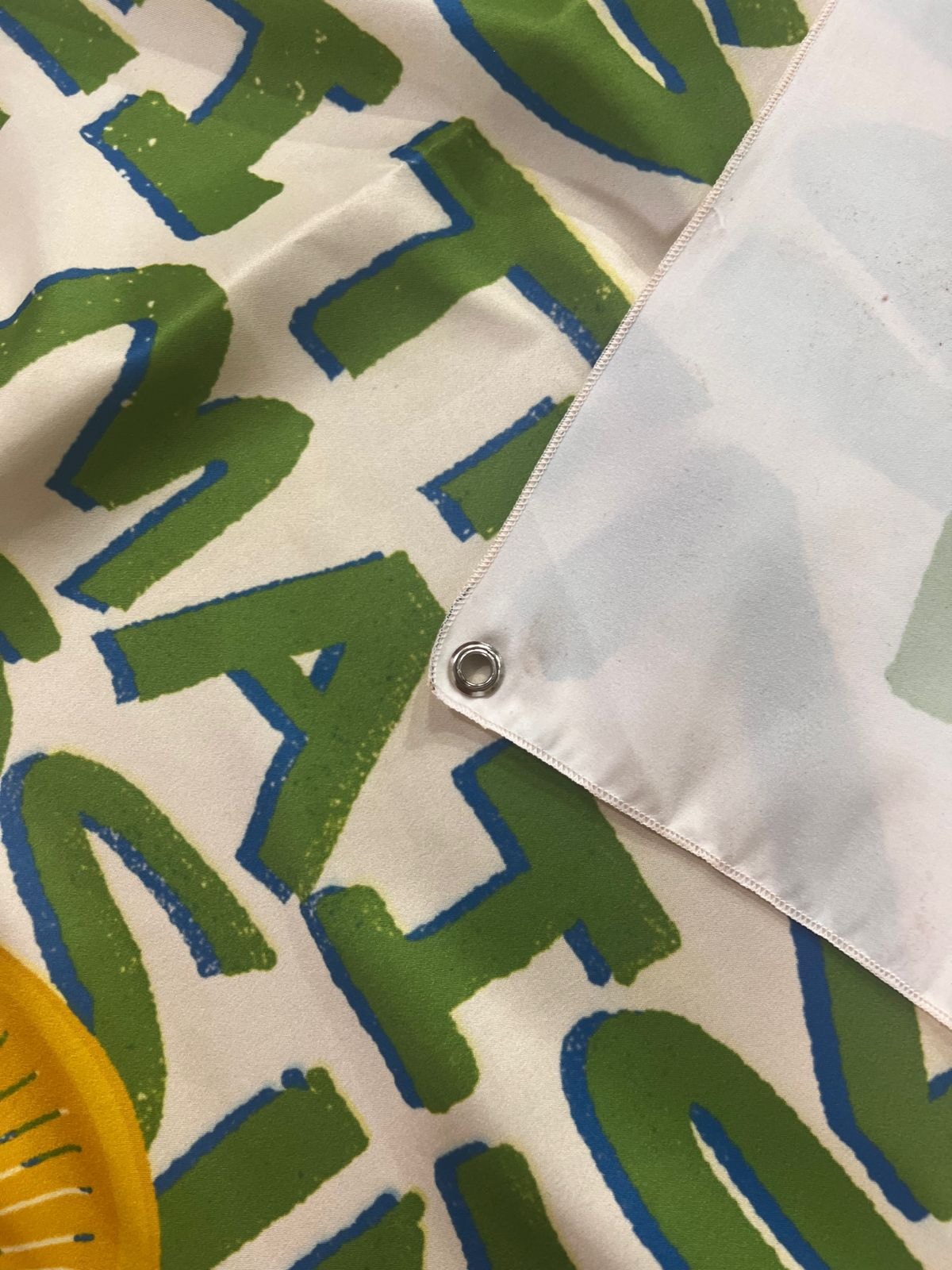 * Possui ilhós (círculo de metal para pendurar).
