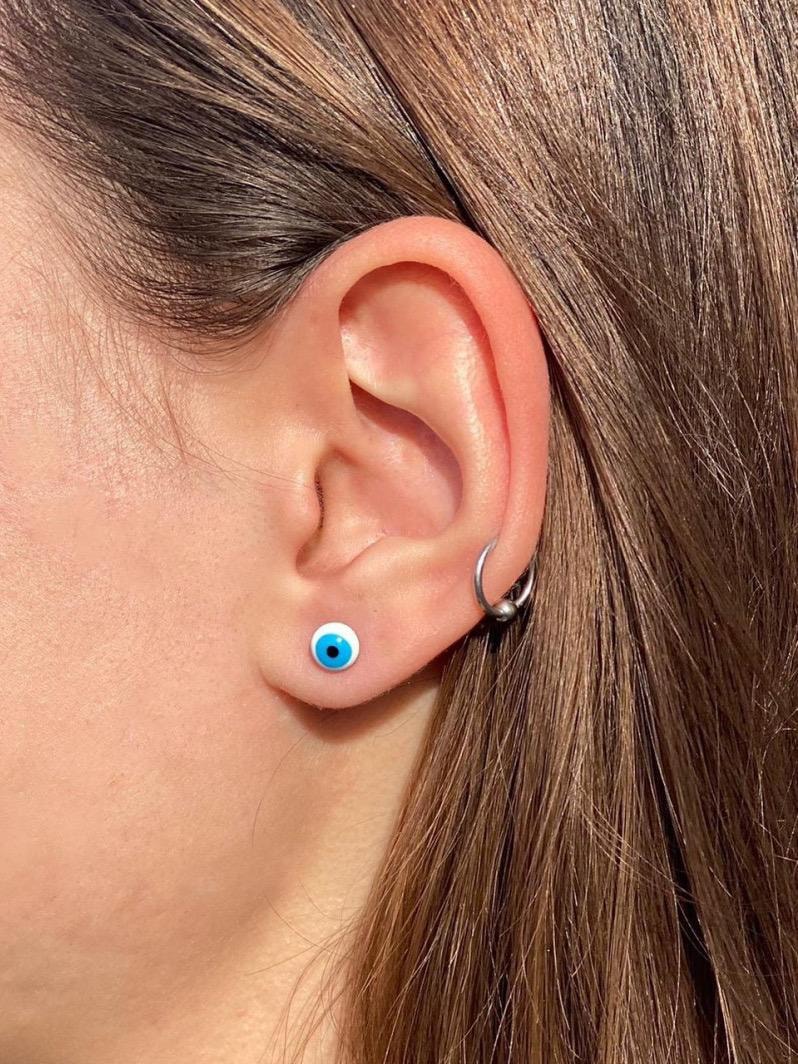 O Olho Grego é um símbolo milenar contra o mau olhado. Na Grécia Antiga acreditava-se que o mau olhado possuía a cor azul, e o Olho Grego com a mesma tonalidade teria a capacidade de bloquear as más vibrações. Além de espantar a inveja e a negatividade, o Olho Grego atua atraindo boa sorte e positividade. Com o par de brincos Olho Grego você pode aliar o poder protetor deste amuleto às propriedades do incenso que estiver utilizando.