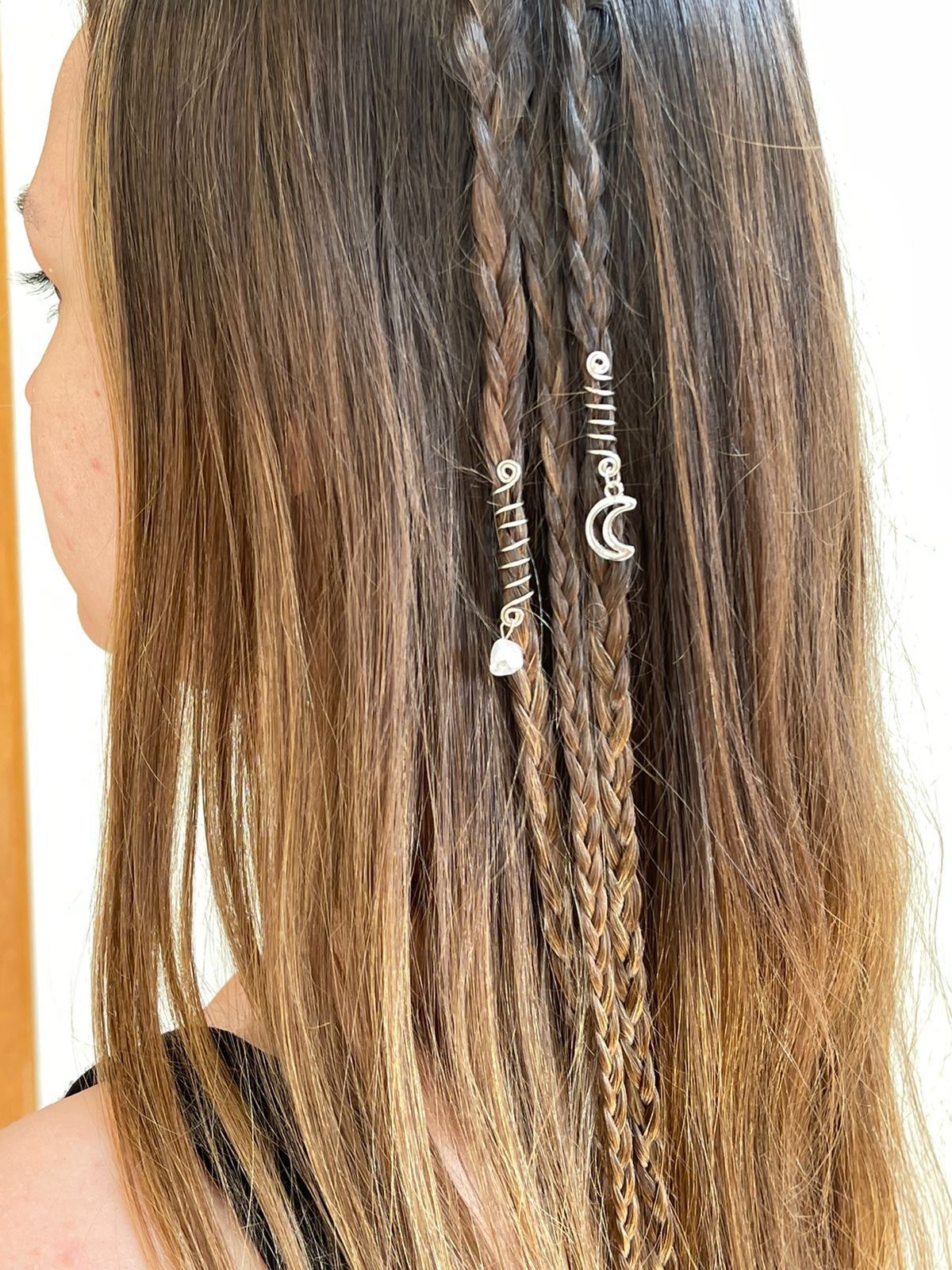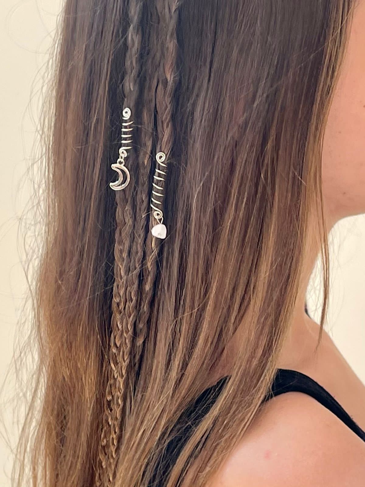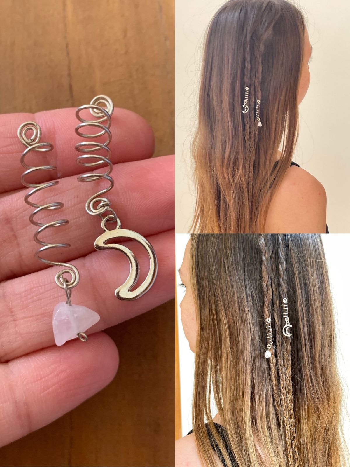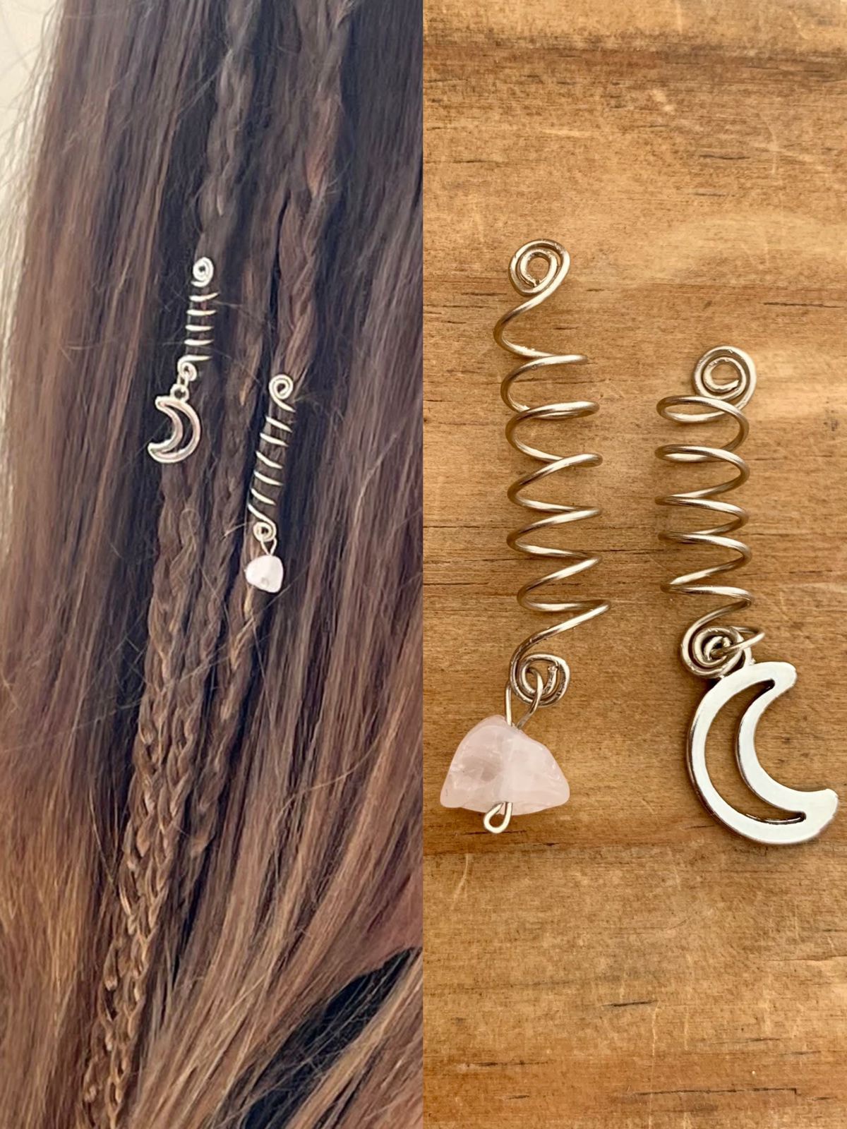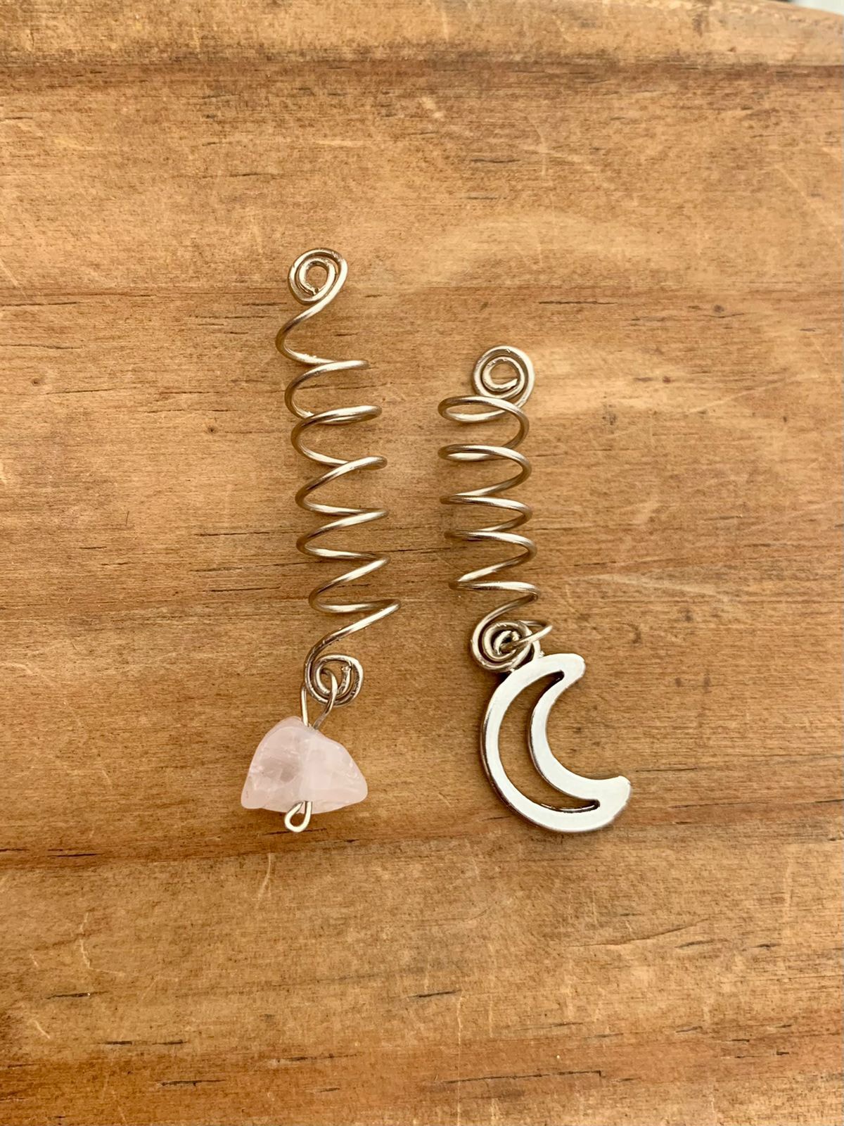 Par de Anéis de Trança / Dread - Lua e Quartzo Rosa