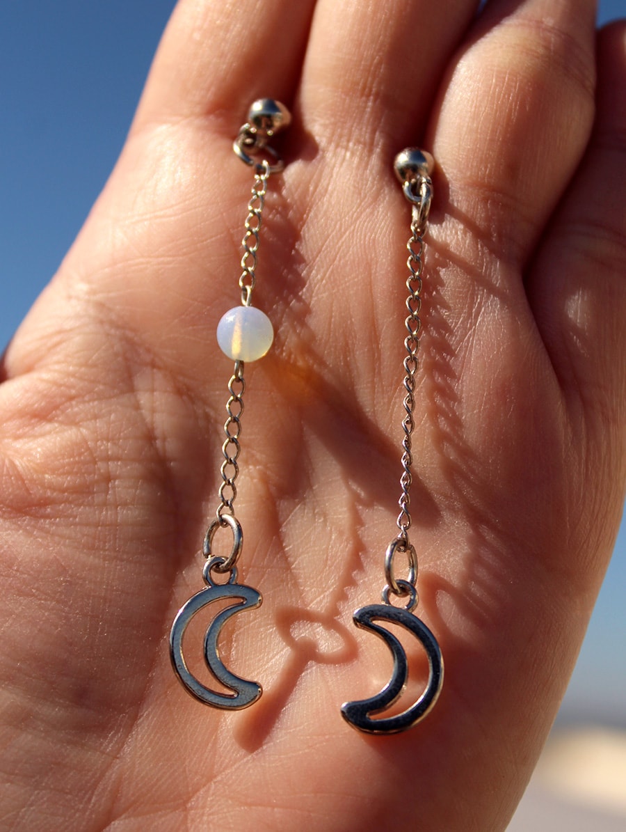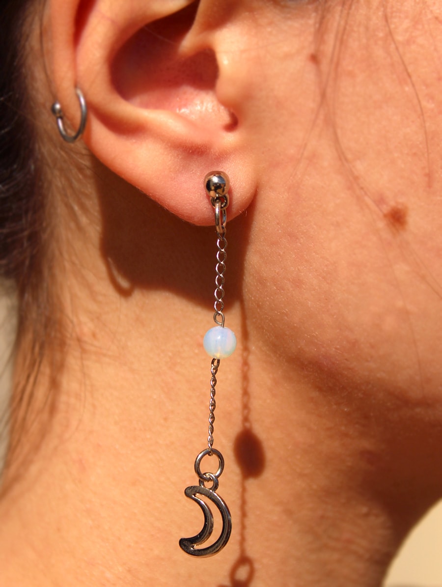 Brinco artesanal Lua com esfera de Opalina.