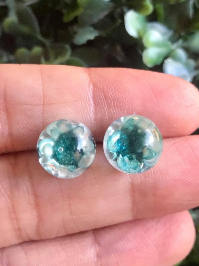 Material: Resina com flor natural. Medida: 1cm de diâmetro.