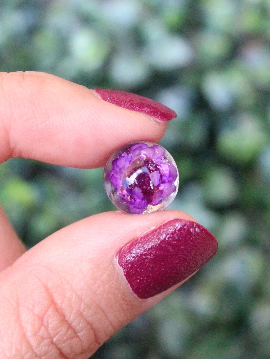 Material: Resina com flor natural. Medida: 1cm de diâmetro.