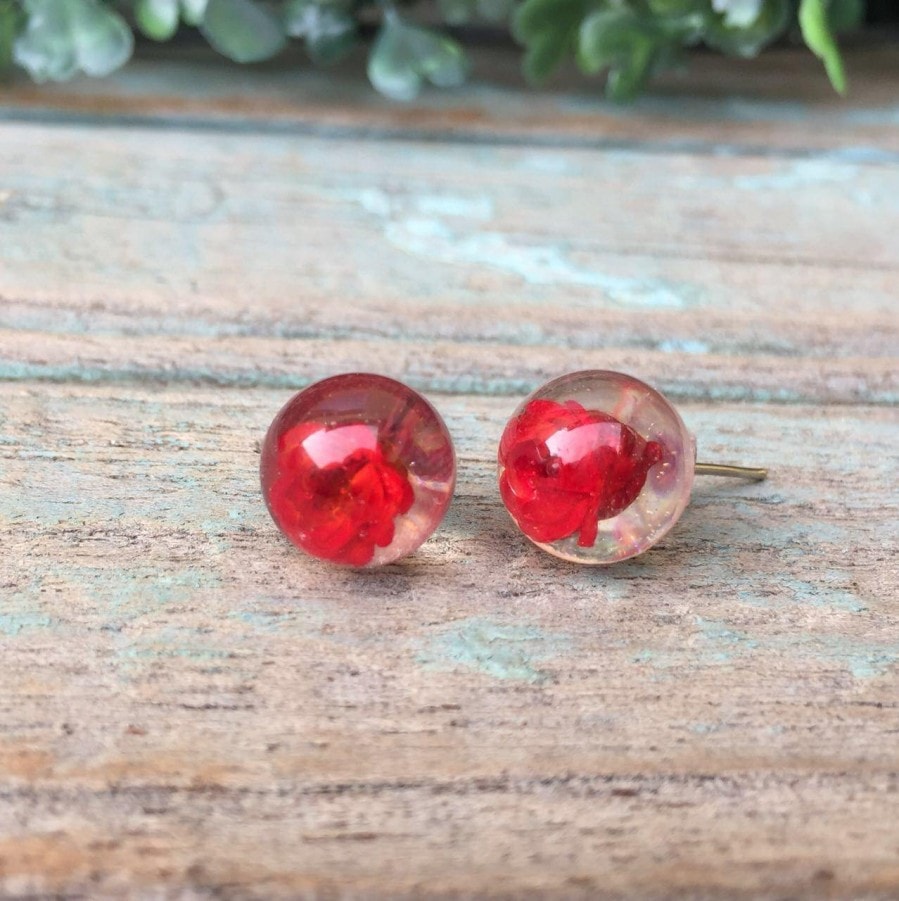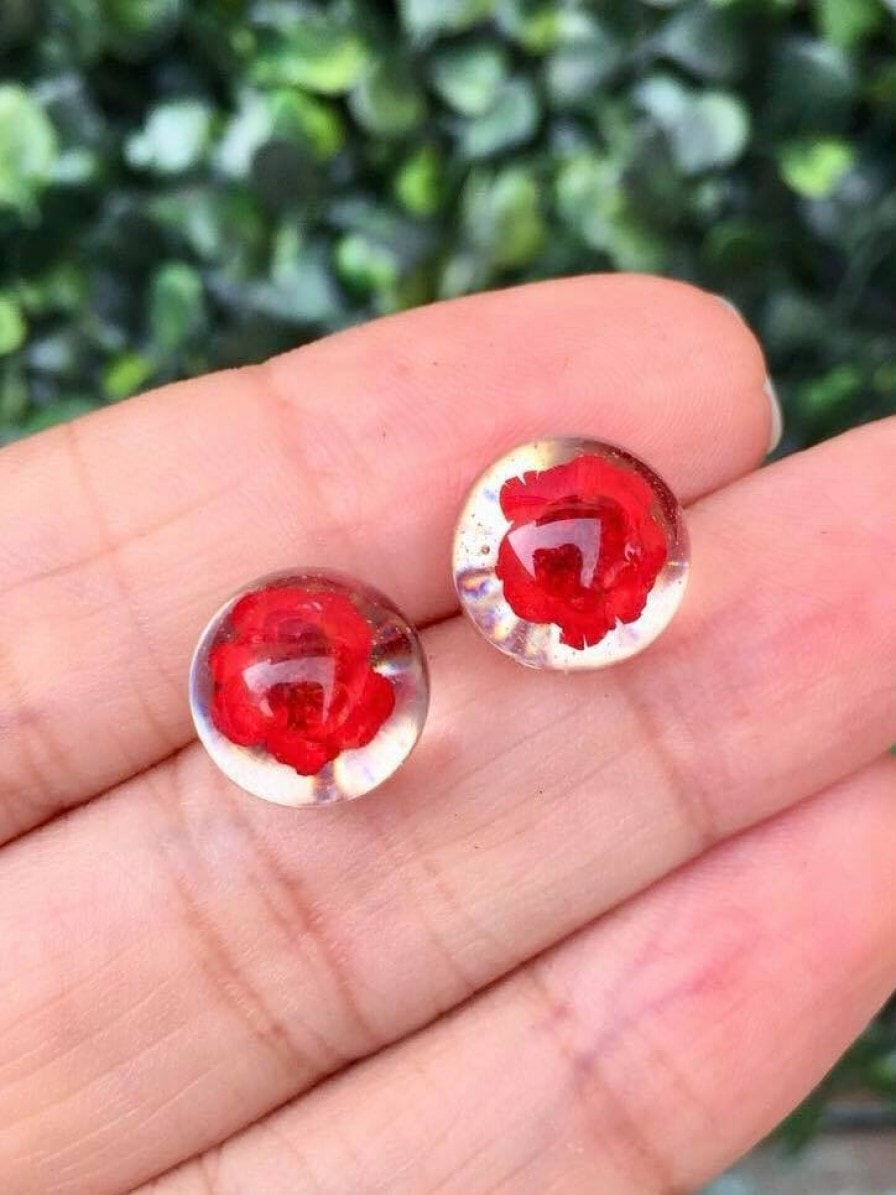 Material: Resina com flor natural. Medida: 1cm de diâmetro.