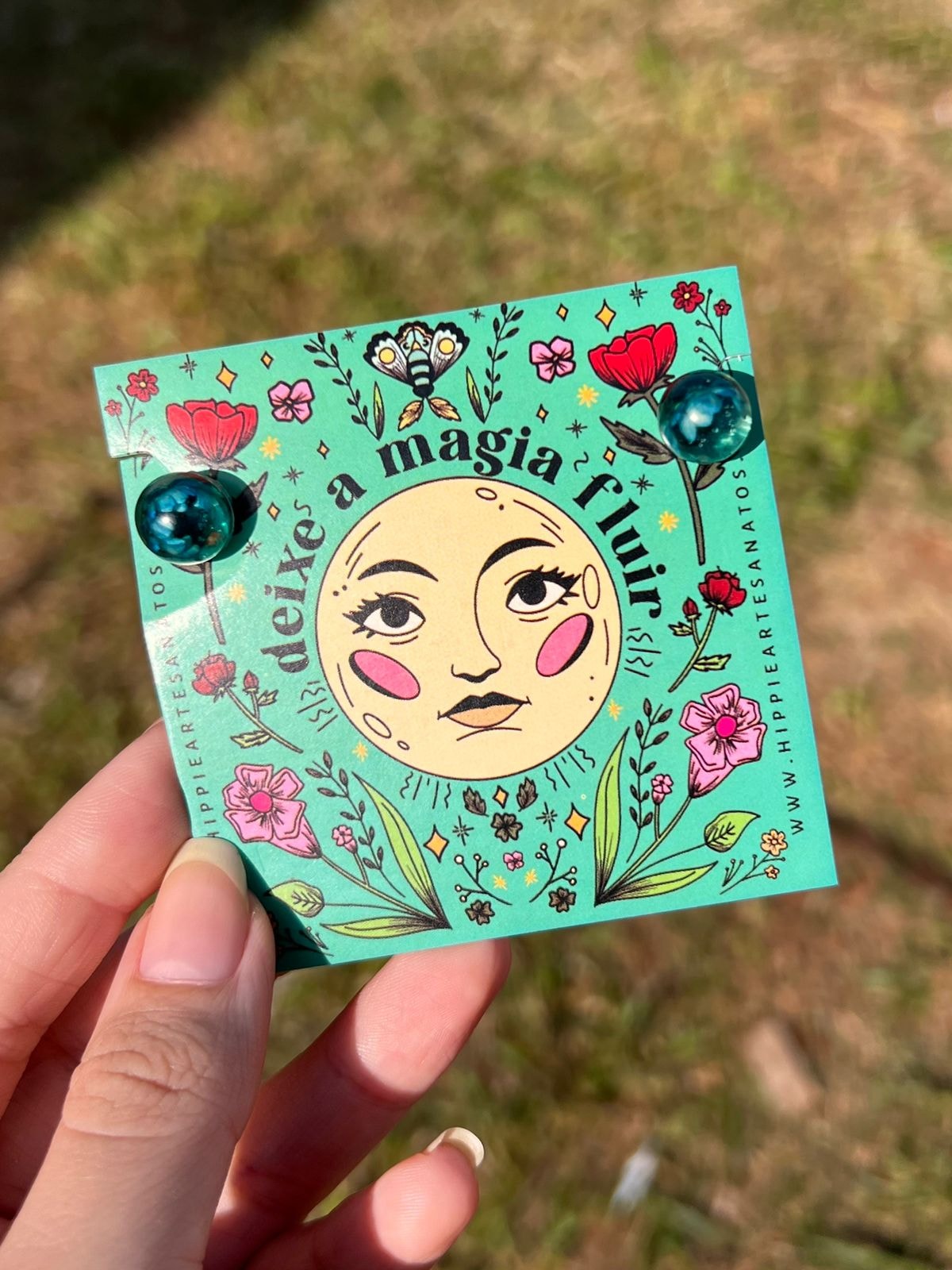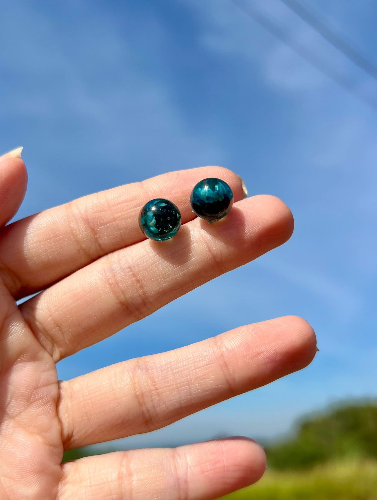 Material: Resina com flor natural. Medida: 1cm de diâmetro.