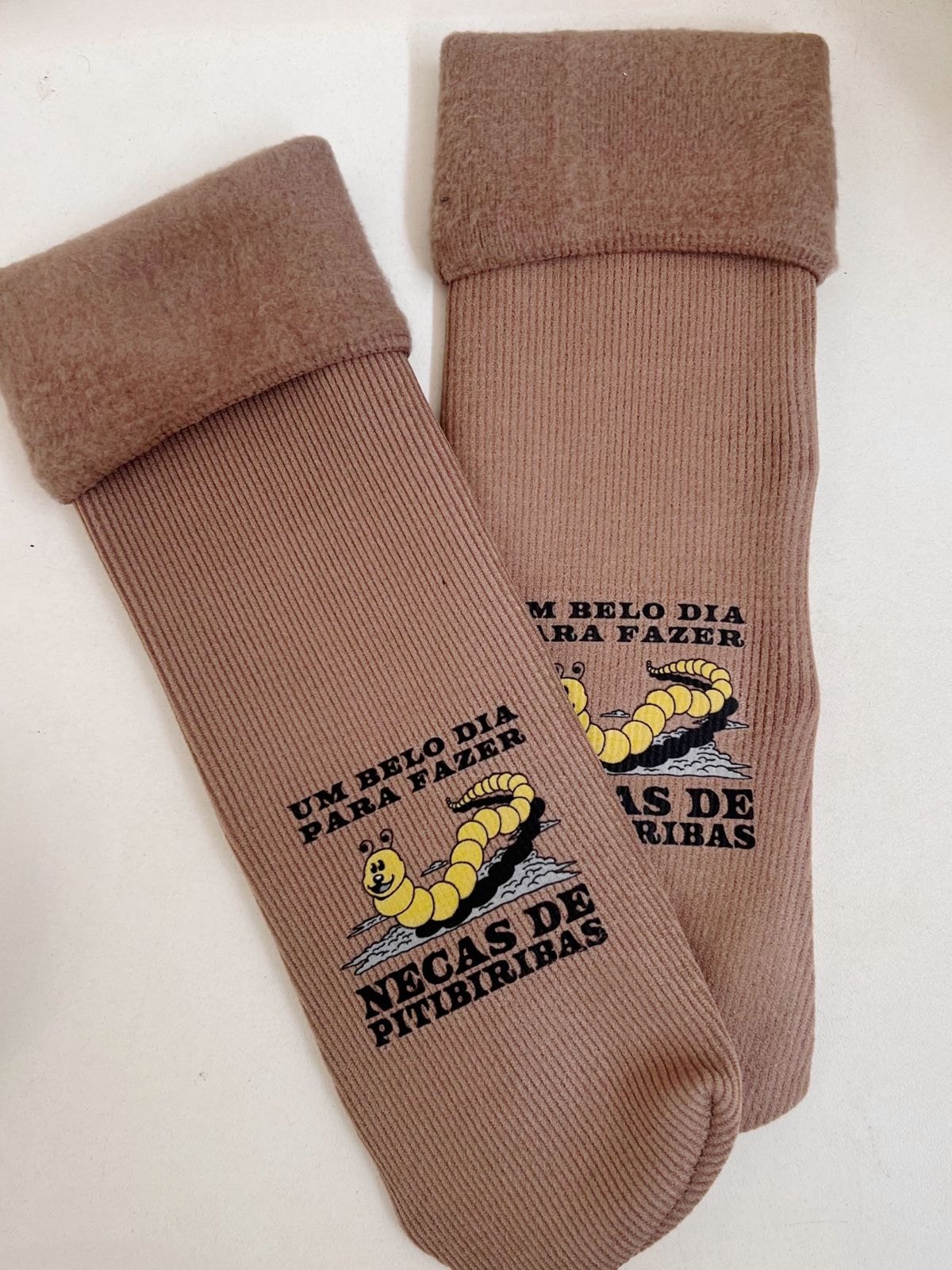 Meia com textura canelada e interior com felpa, confortáveis e quentinhas. Tam único, veste até 43.