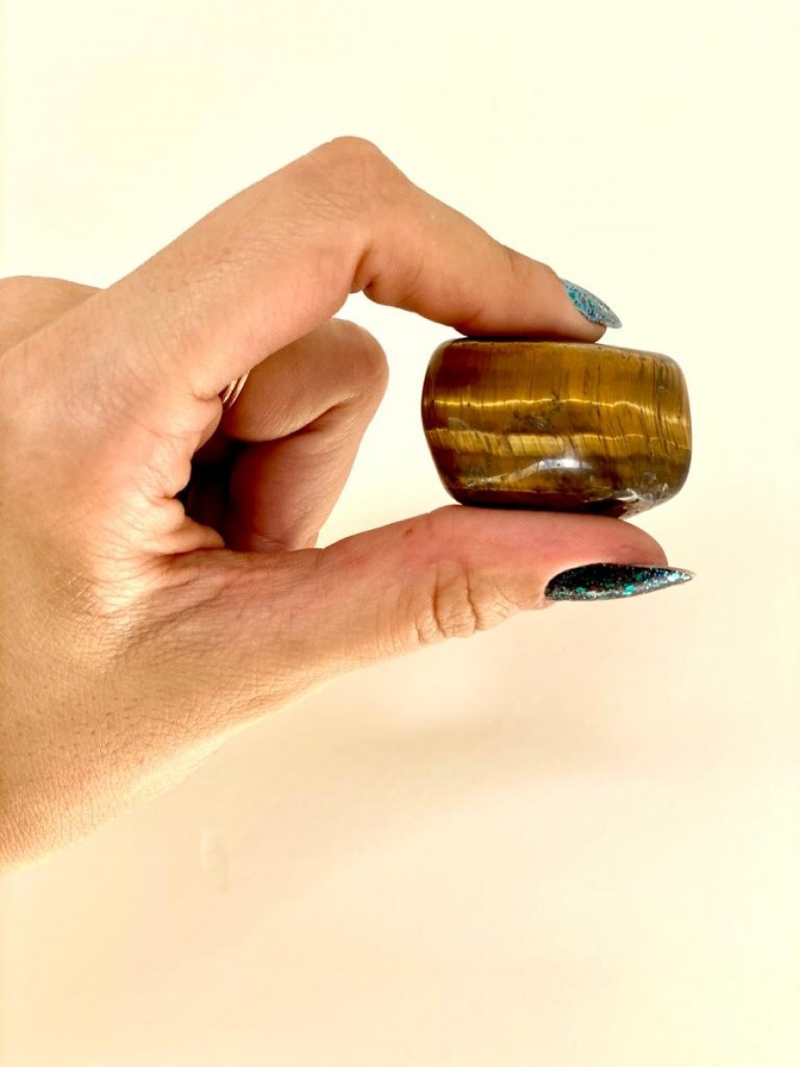 A pedra Olho de Tigre é chamada assim justamente por sua tonalidade, que remete à pele do tigre. Além disso, suas propriedades se associam às qualidades do arquétipo desse animal, associado à coragem, determinação e independência. A Olho de Tigre neutraliza as energias negativas e incentiva a resolução de conflitos. Possui forte energia positiva e inspiradora.