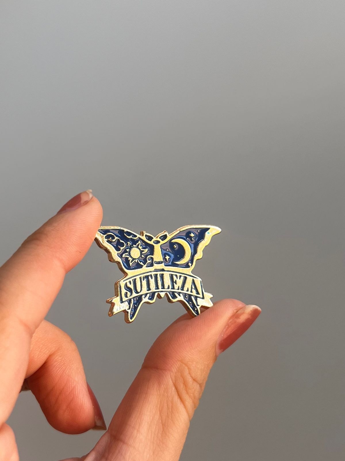 O pin ou broche Borboleta Sutileza traz esse animal encantado para representar a sutileza.