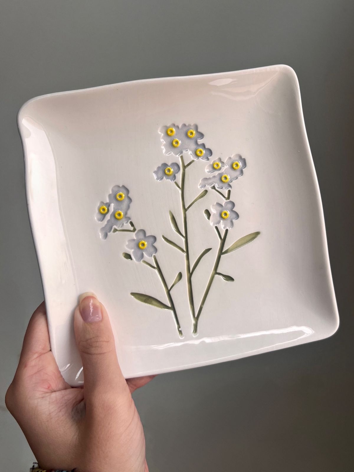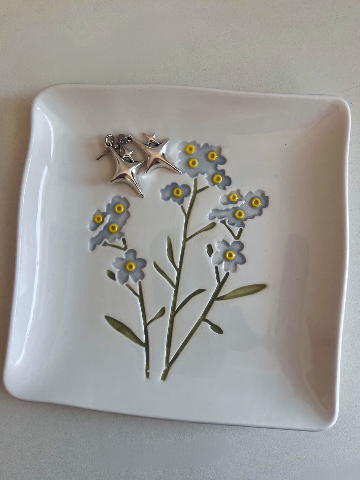 Placa Parede/ Porta Joias Cerâmica - Flor Azul 16cm