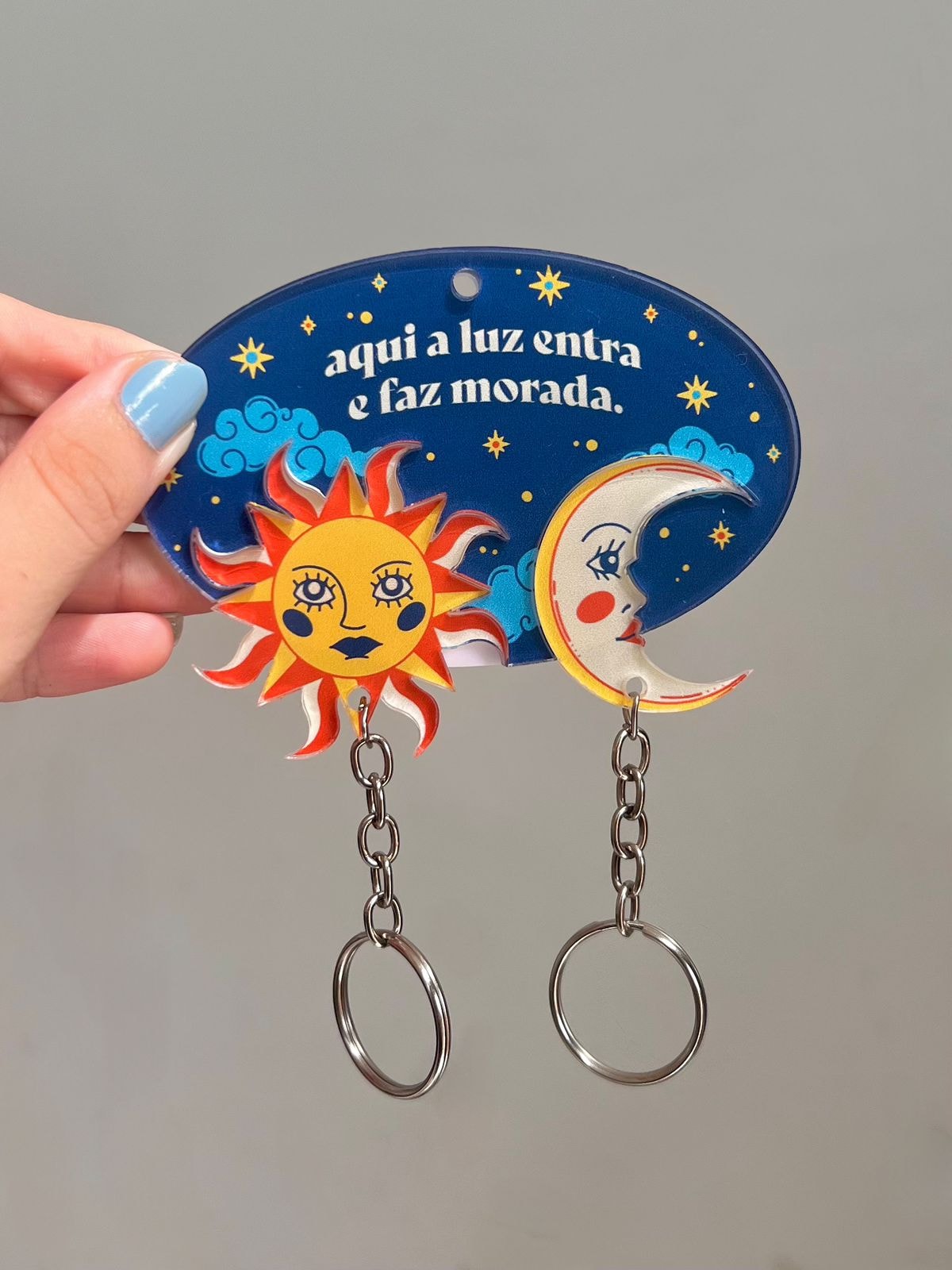Porta-chaves Sol e Lua com 2 chaveiros.