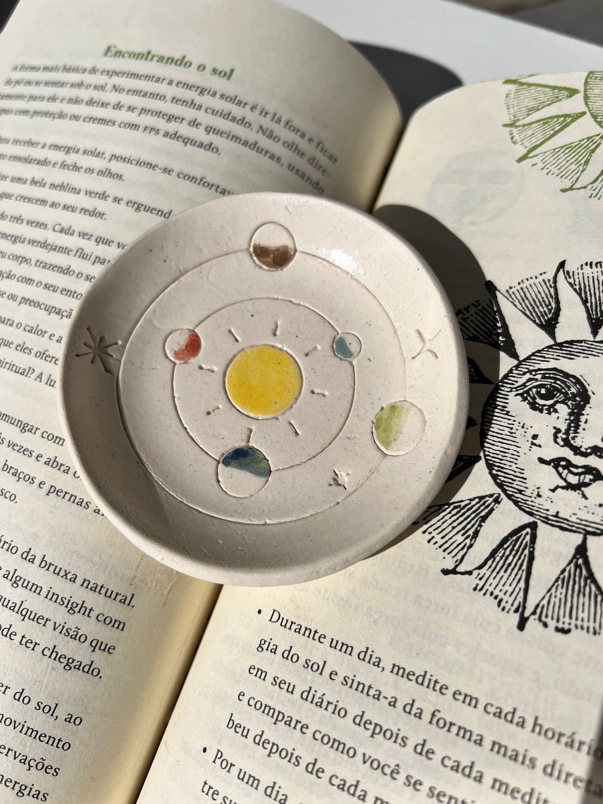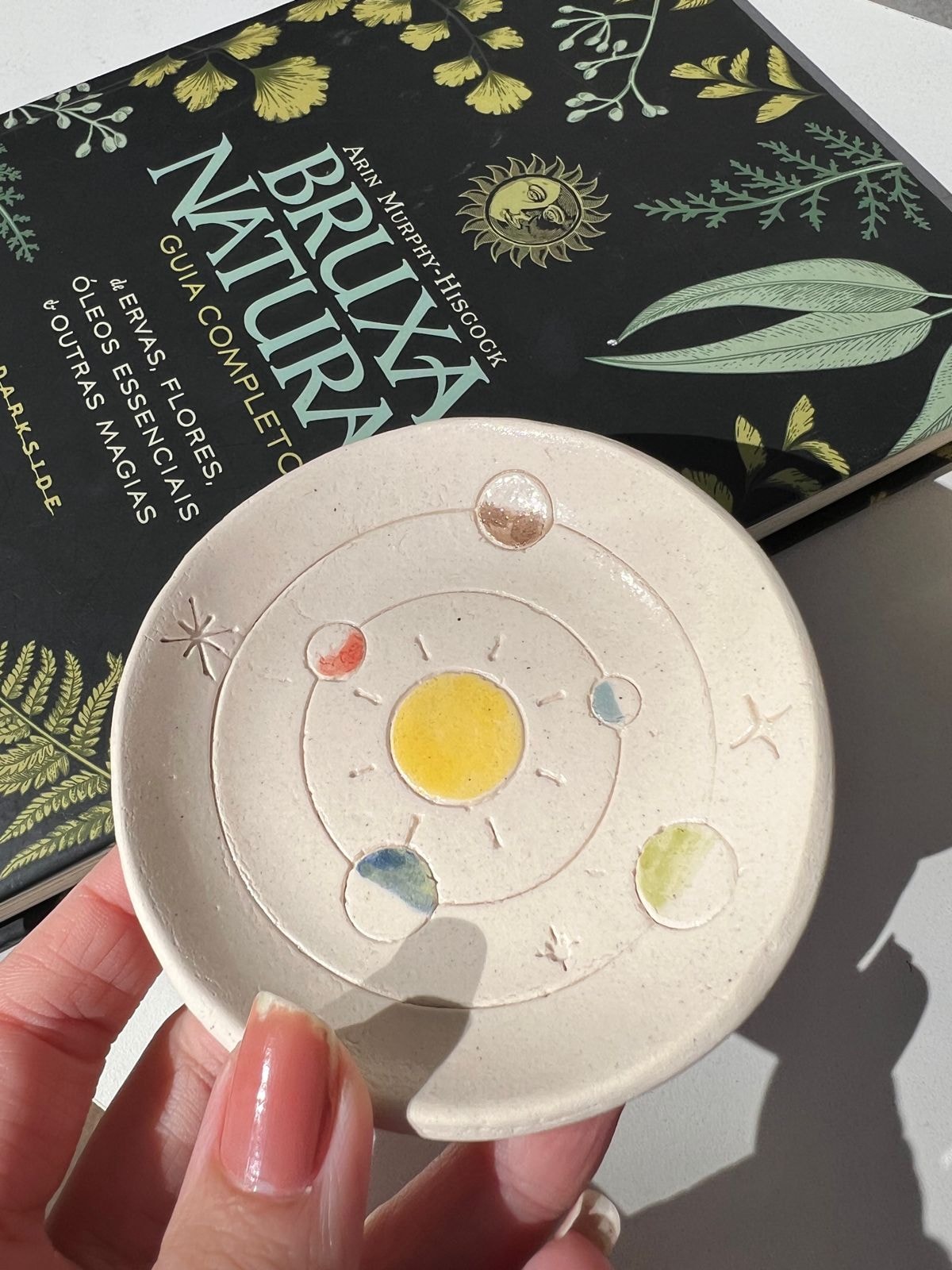 O sistema solar é formado por corpos celestes que giram em torno do Sol. Cada um deles possui características e significados próprios. O porta jóias Sistema Solar traz os oito planetas que orbitam o sol.