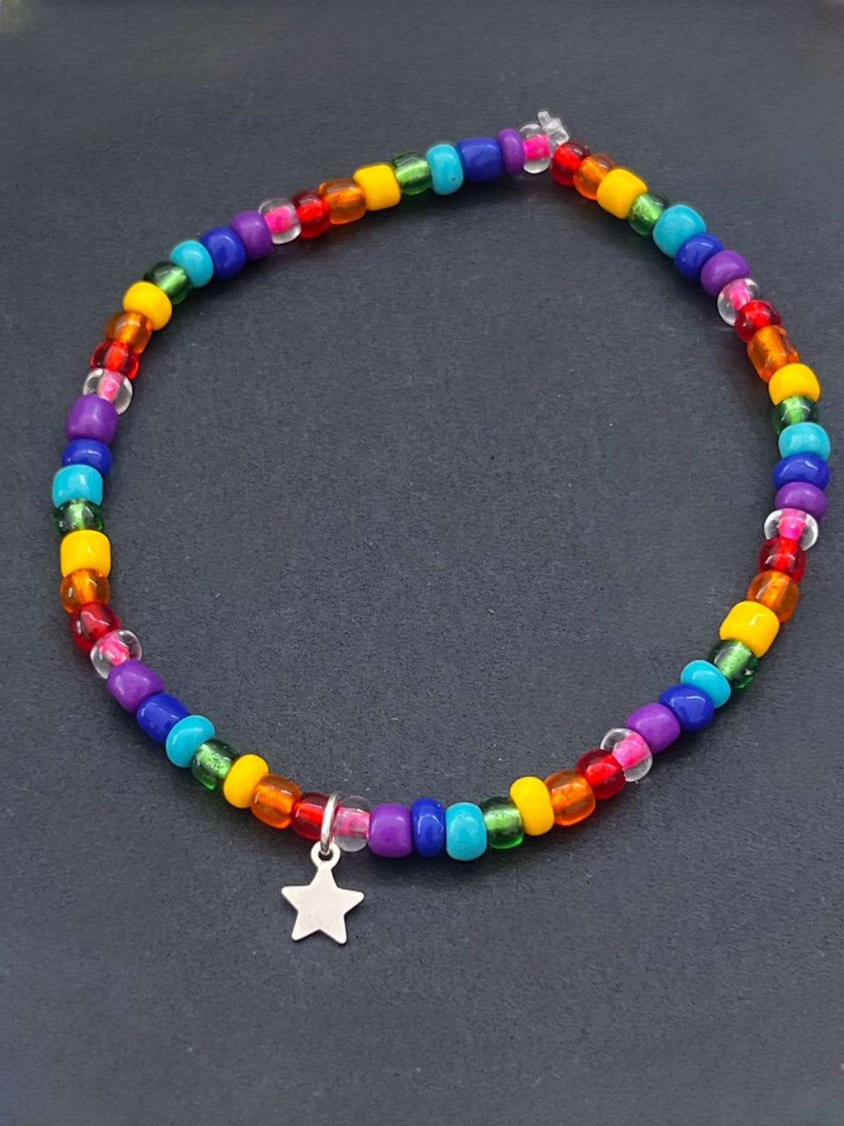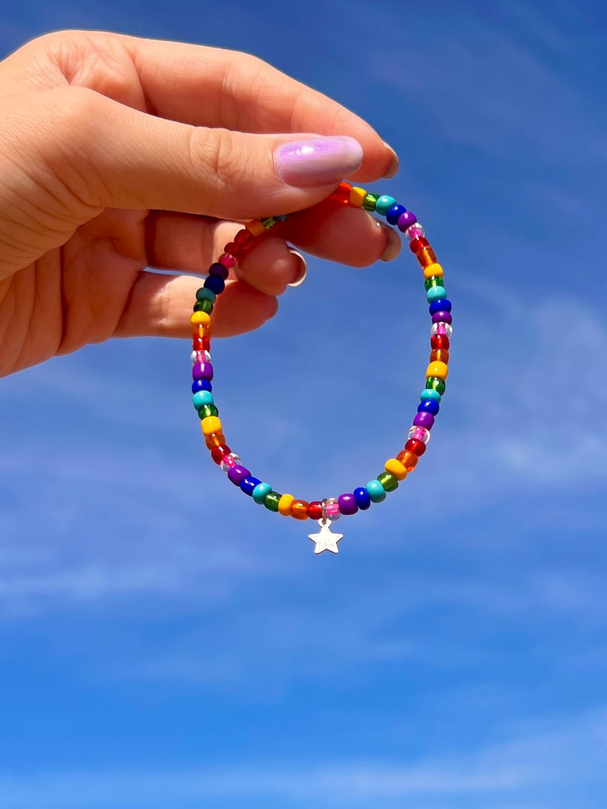 A pulseira arco-íris é alegre e divertida. O arco-íris simboliza renovação, e nada melhor do que iniciar um novo ciclo adornada de muitas cores vibrantes. Para levar felicidade ao seu visual e à sua vida :)