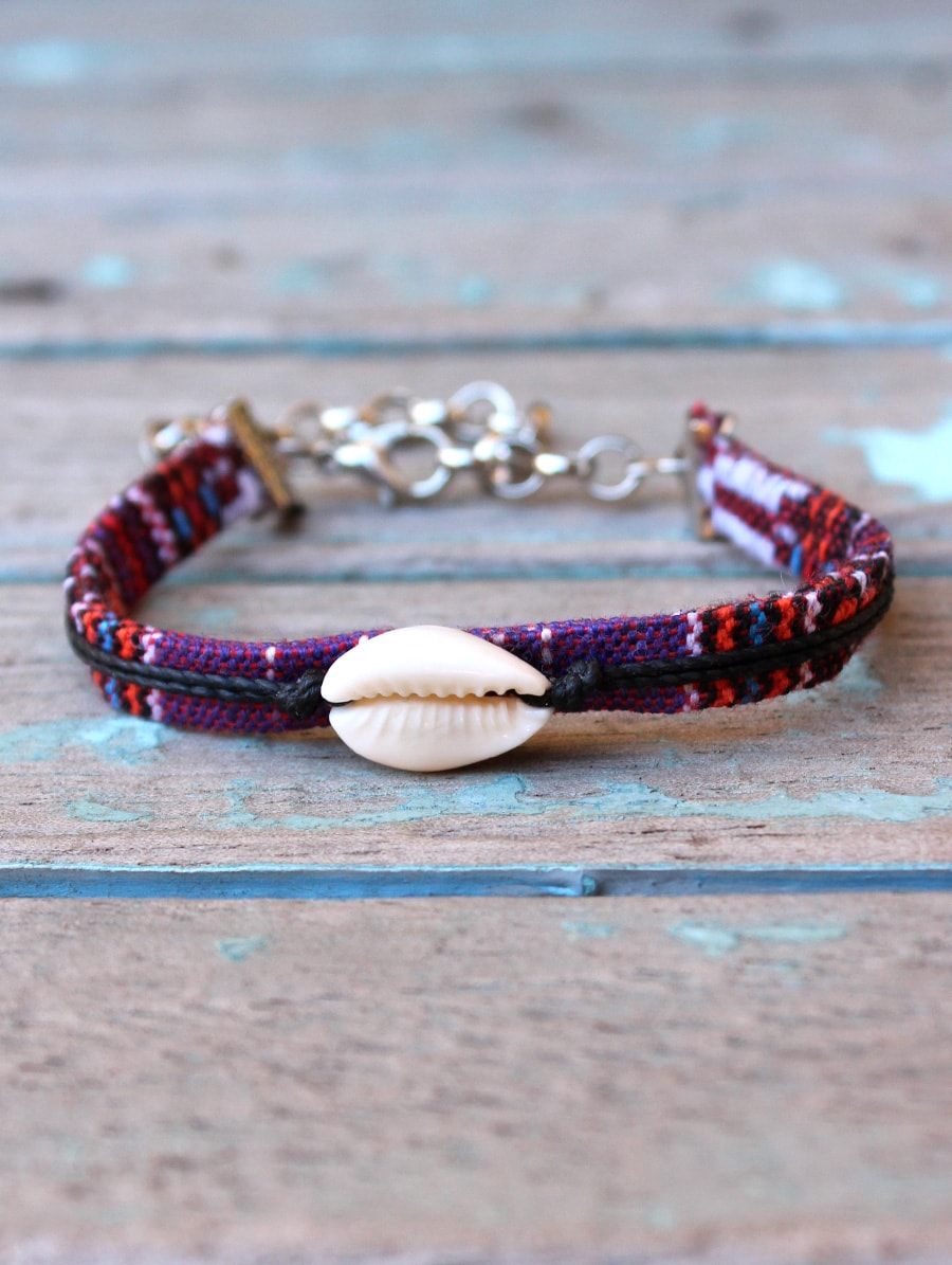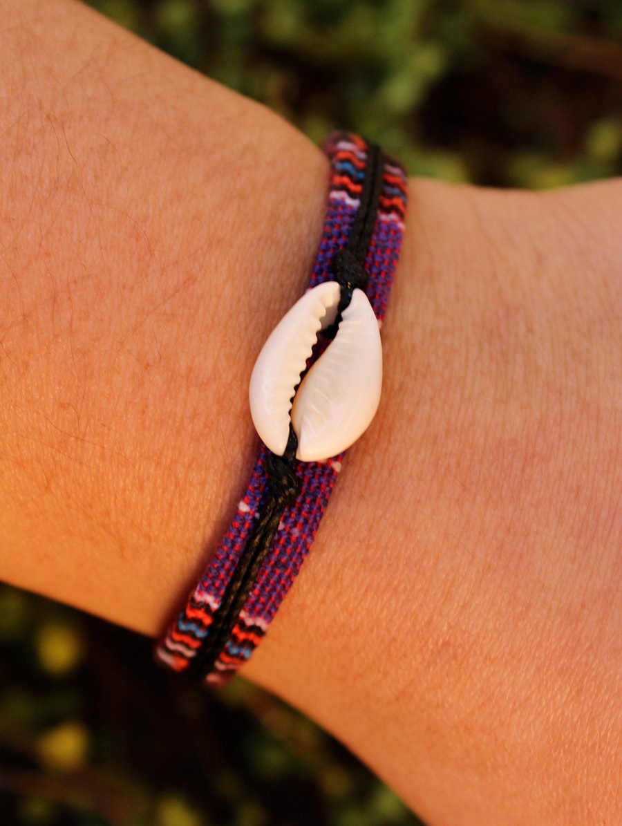 Material: Tecelagem peruana e pingente de búzio natural. Medida: 14cm de comprimento + regulagem.