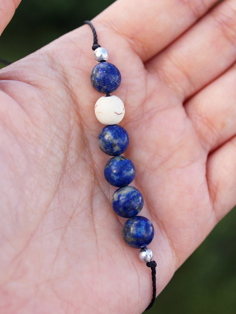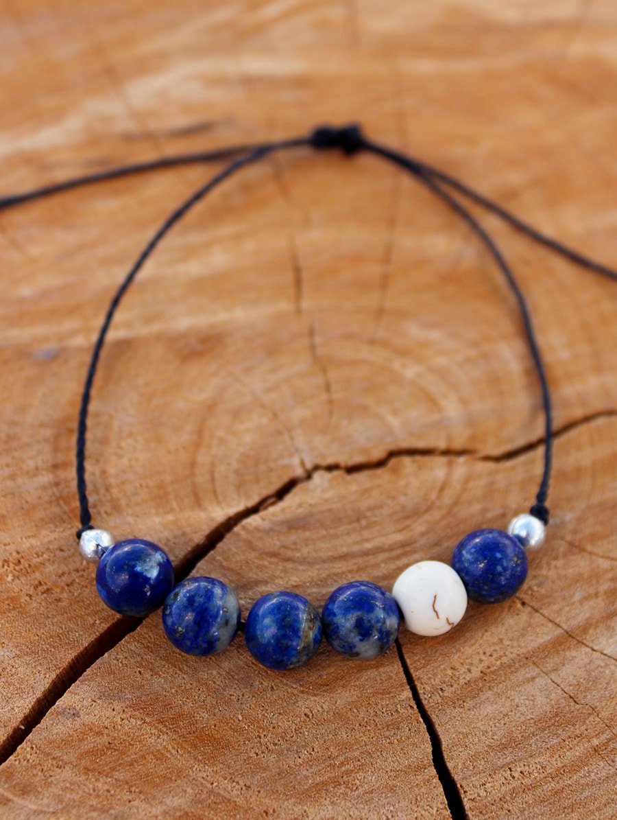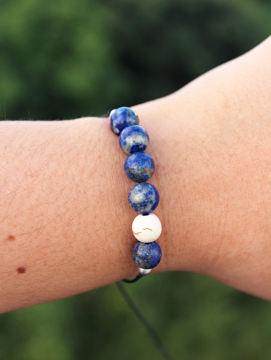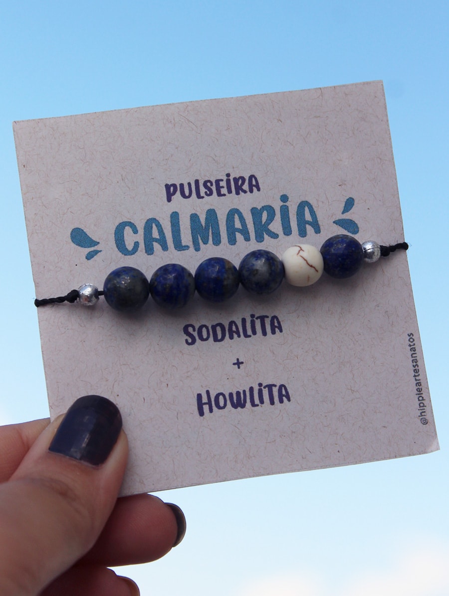 Pulseira artesanal Calmaria com Sodalita e Howlita.