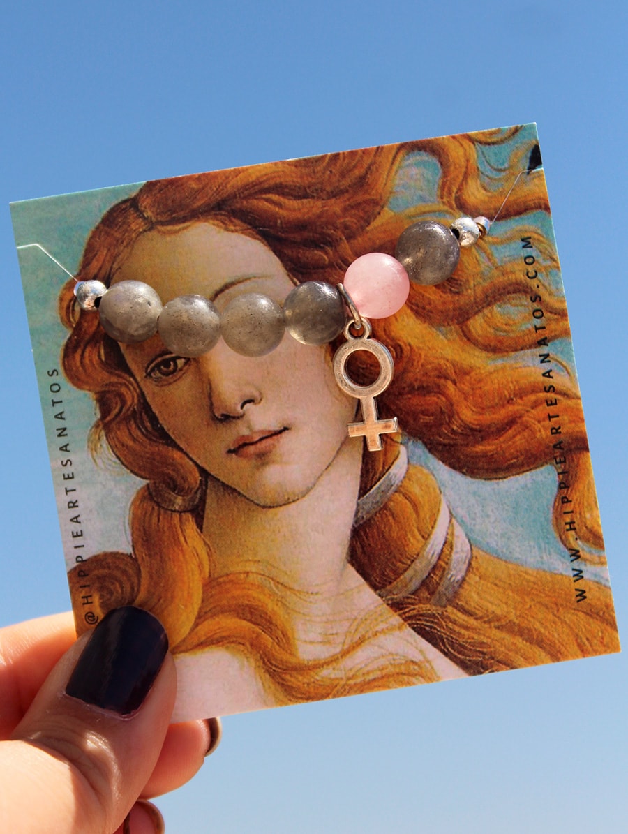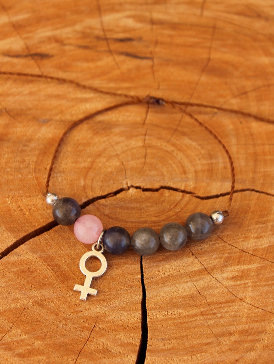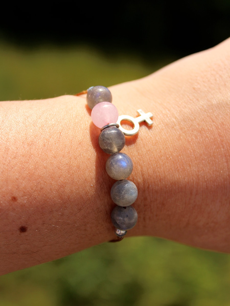 Pulseira artesanal Vênus. Com Labradorita e Quartzo Rosa.