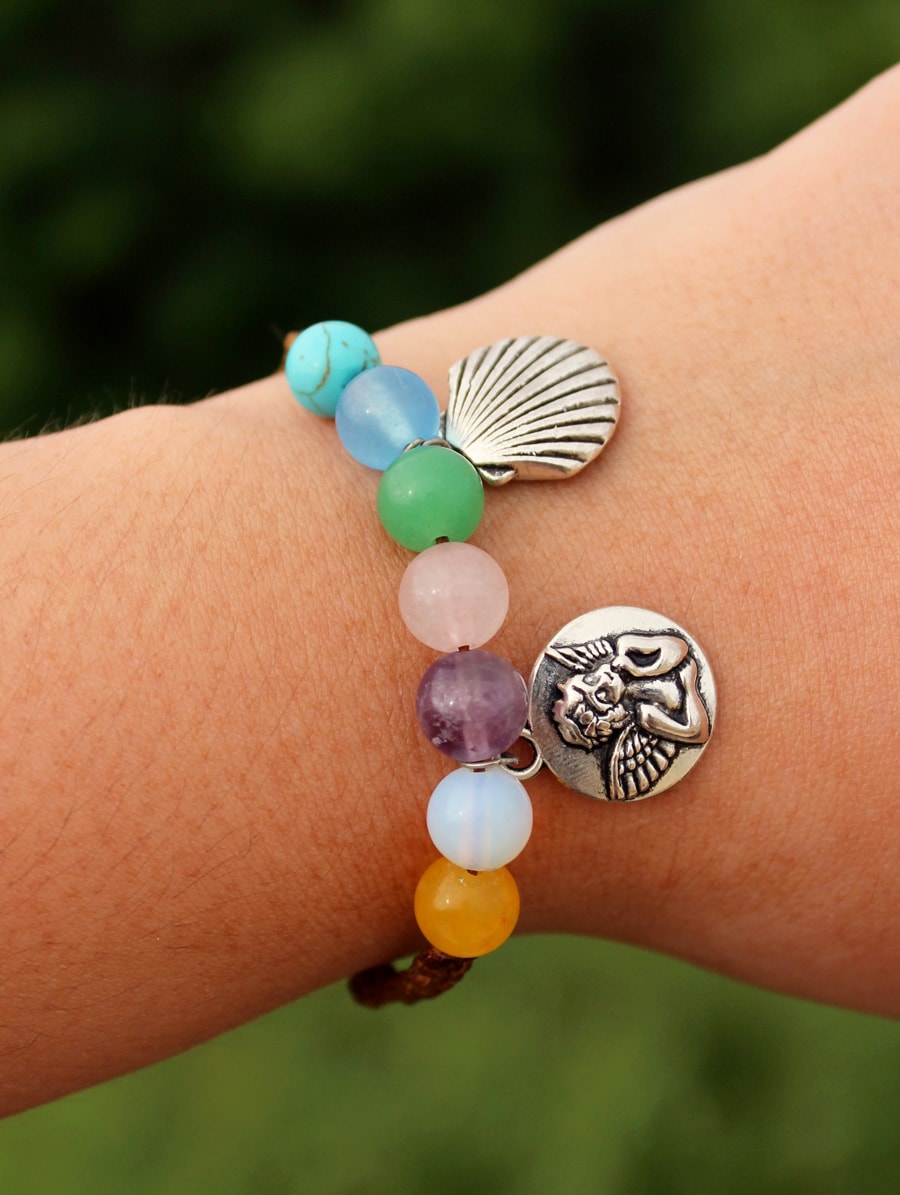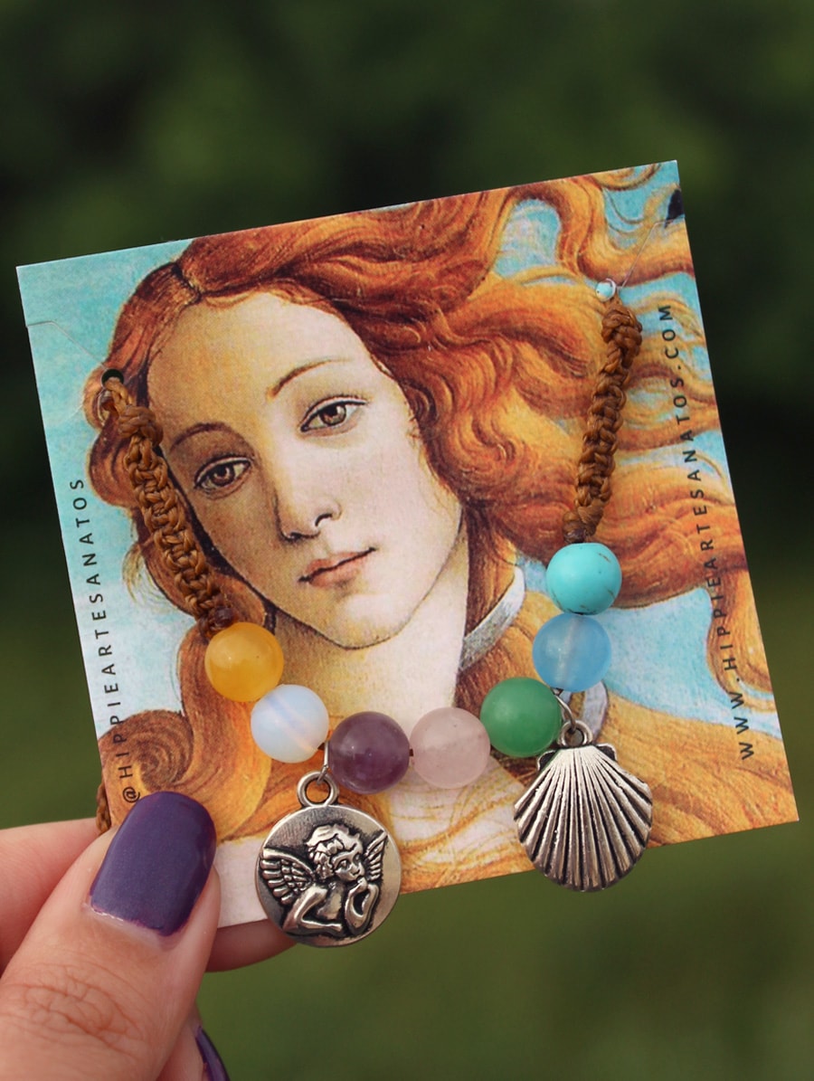 Com Cianita, Opalina, Ametista, Quartzo Rosa, Quartzo Verde, Água Marinha e Turquesa.