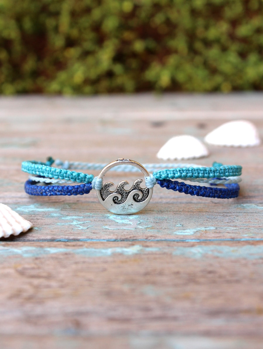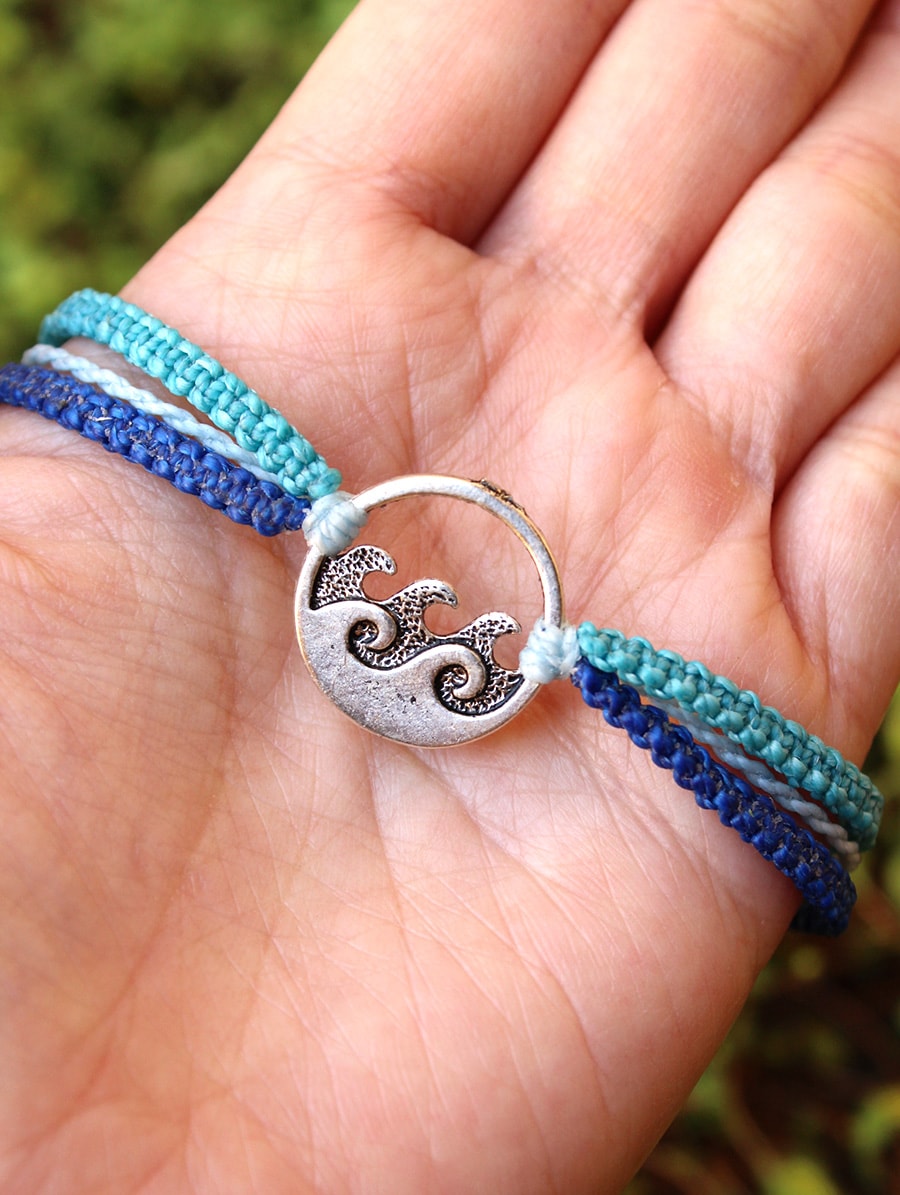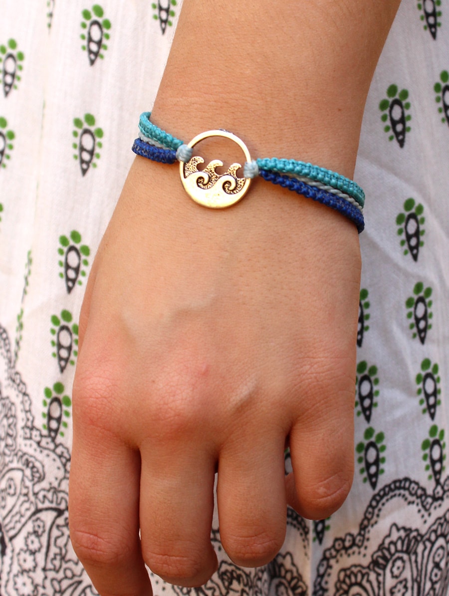 Pulseira artesanal Ondas do Mar. Cordão trançado à mão em técnica macramê.