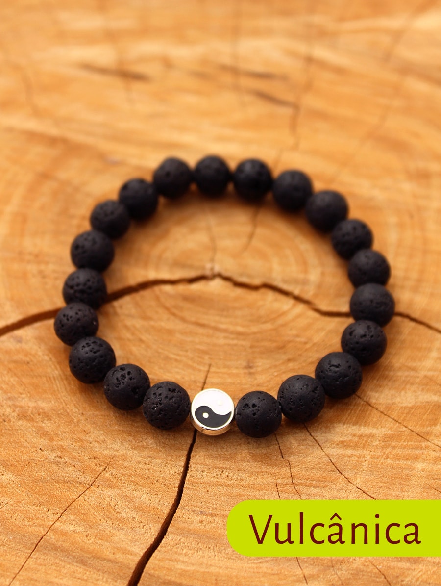 Material: Fio elástico, pingente de metal e pedra natural.