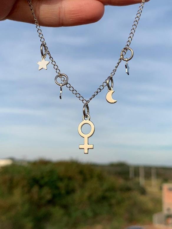 O símbolo de Vênus lembra um espelho de mão com o cabo voltado para baixo. Essa simbologia remete à Mãe Terra. Enquanto a Lua é considerada o princípio feminino no sentido de gestação e multiplicação, Vênus representa a feminilidade a partir da sensualidade, do amor e da beleza em todas as suas formas. Vênus é a estrela mais brilhante do céu, também chamada de estrela guia ou estrela da manhã.