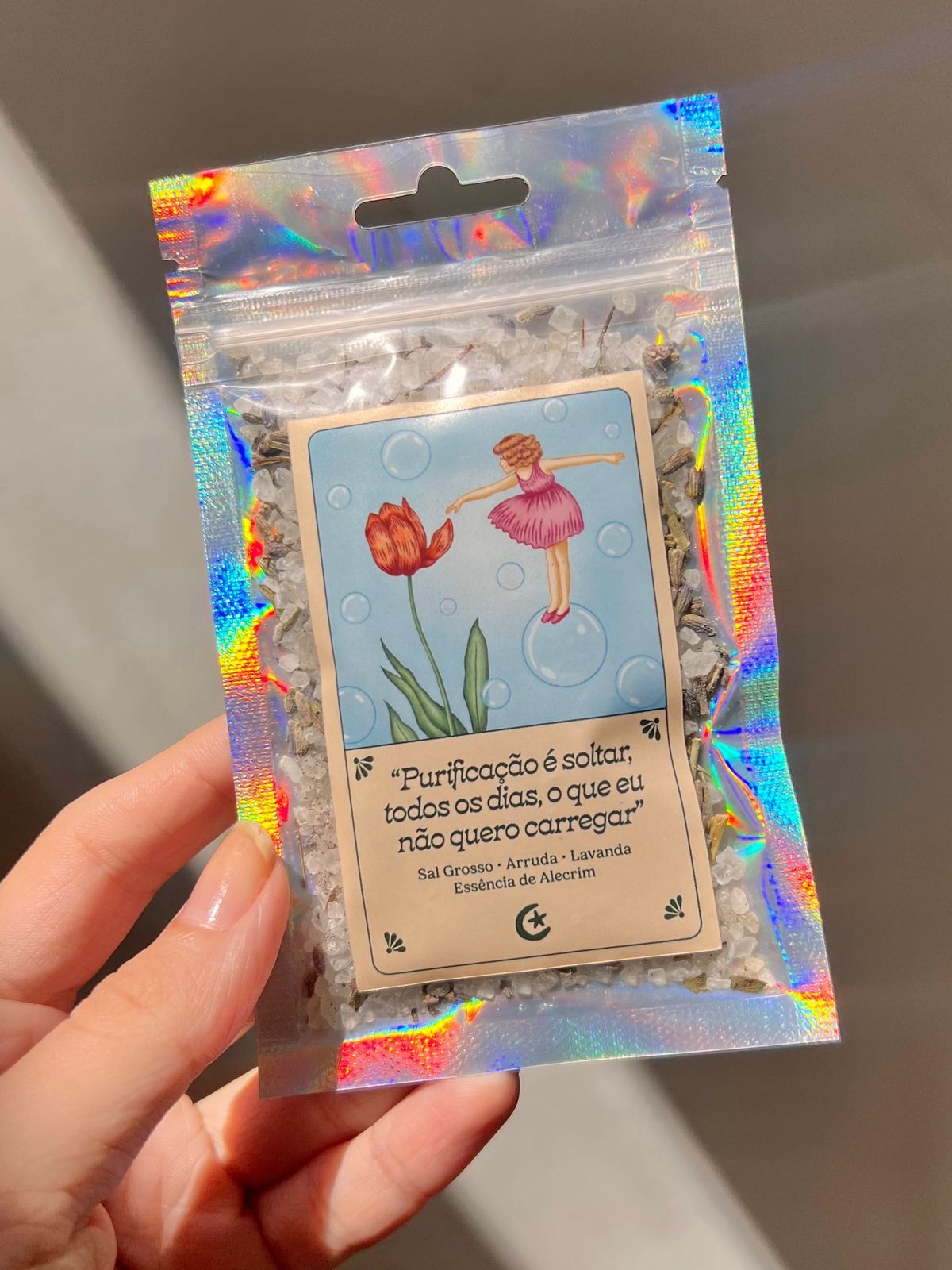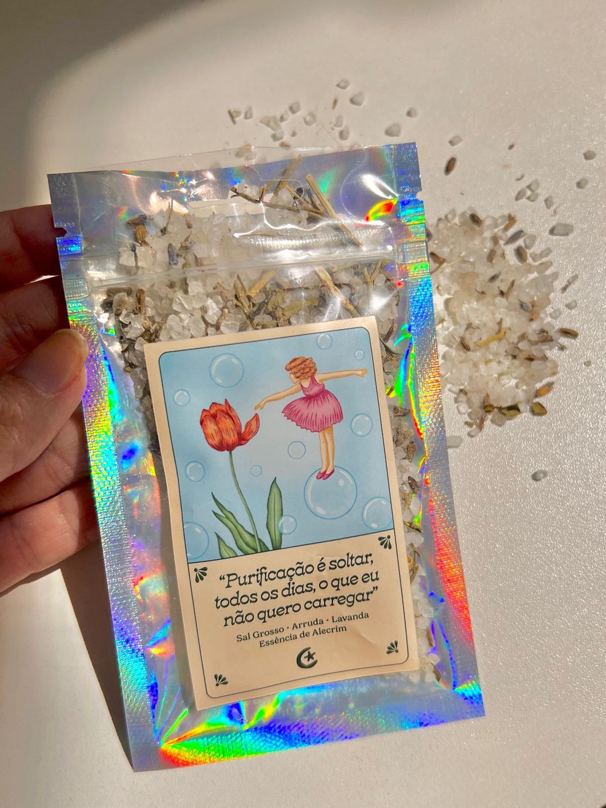 Contém Camomila, Sal Grosso e Lavanda.