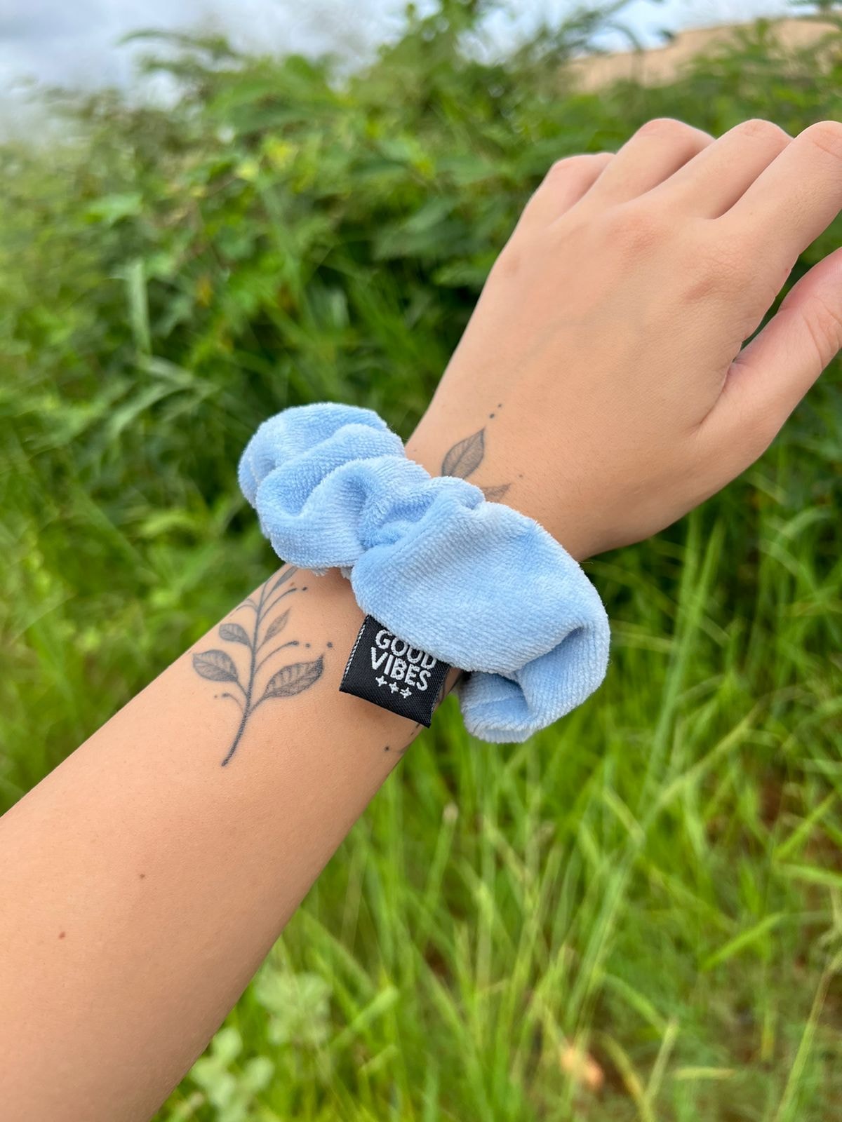 O Scrunchie é um acessório versátil que vai do pulso para o cabelo e vice-versa.
