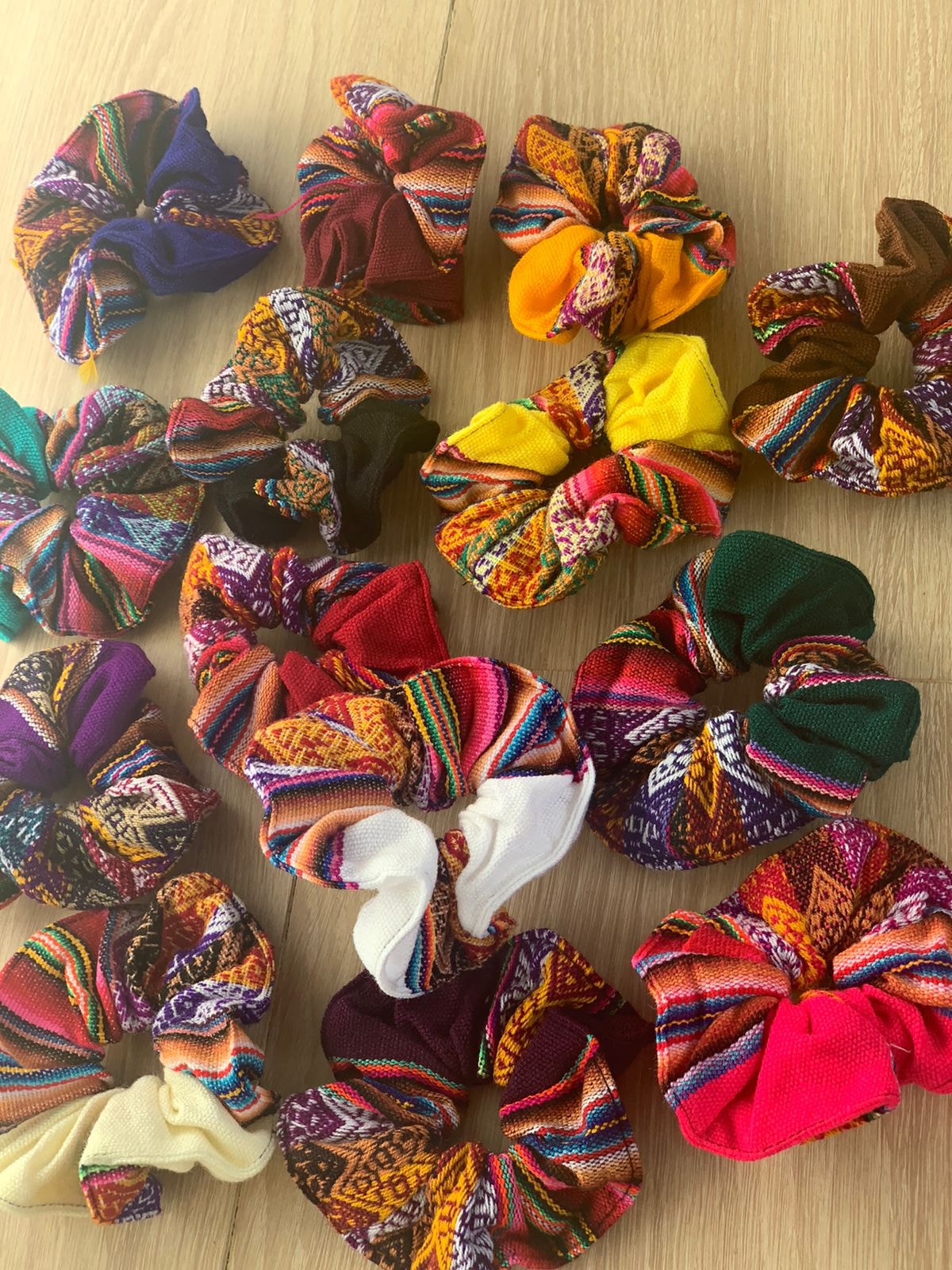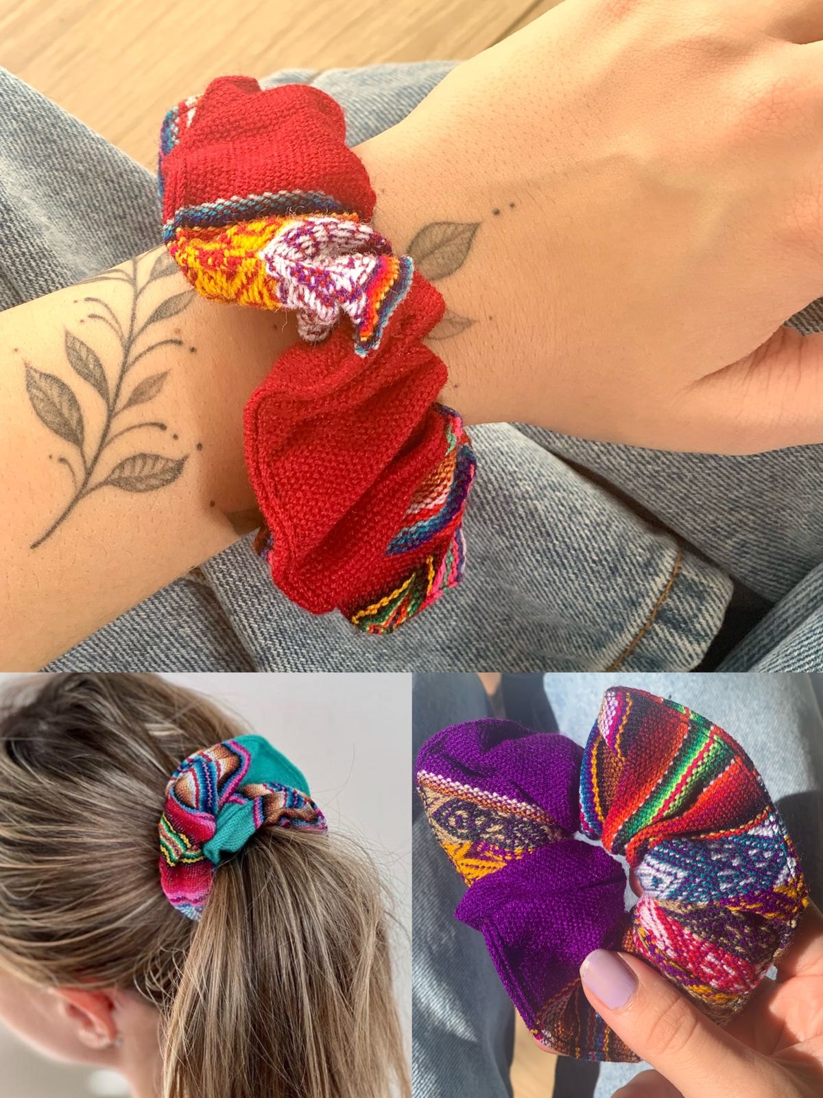 O Scrunchie é um acessório versátil que vai do pulso para o cabelo e vice-versa. Dá um toque de estilo ao penteado e ao look. Scrunchies são elásticos de cabelo com um design especial.
