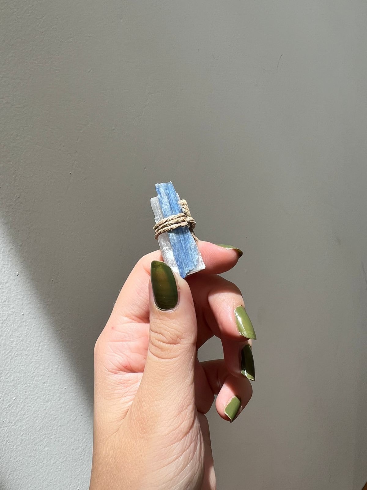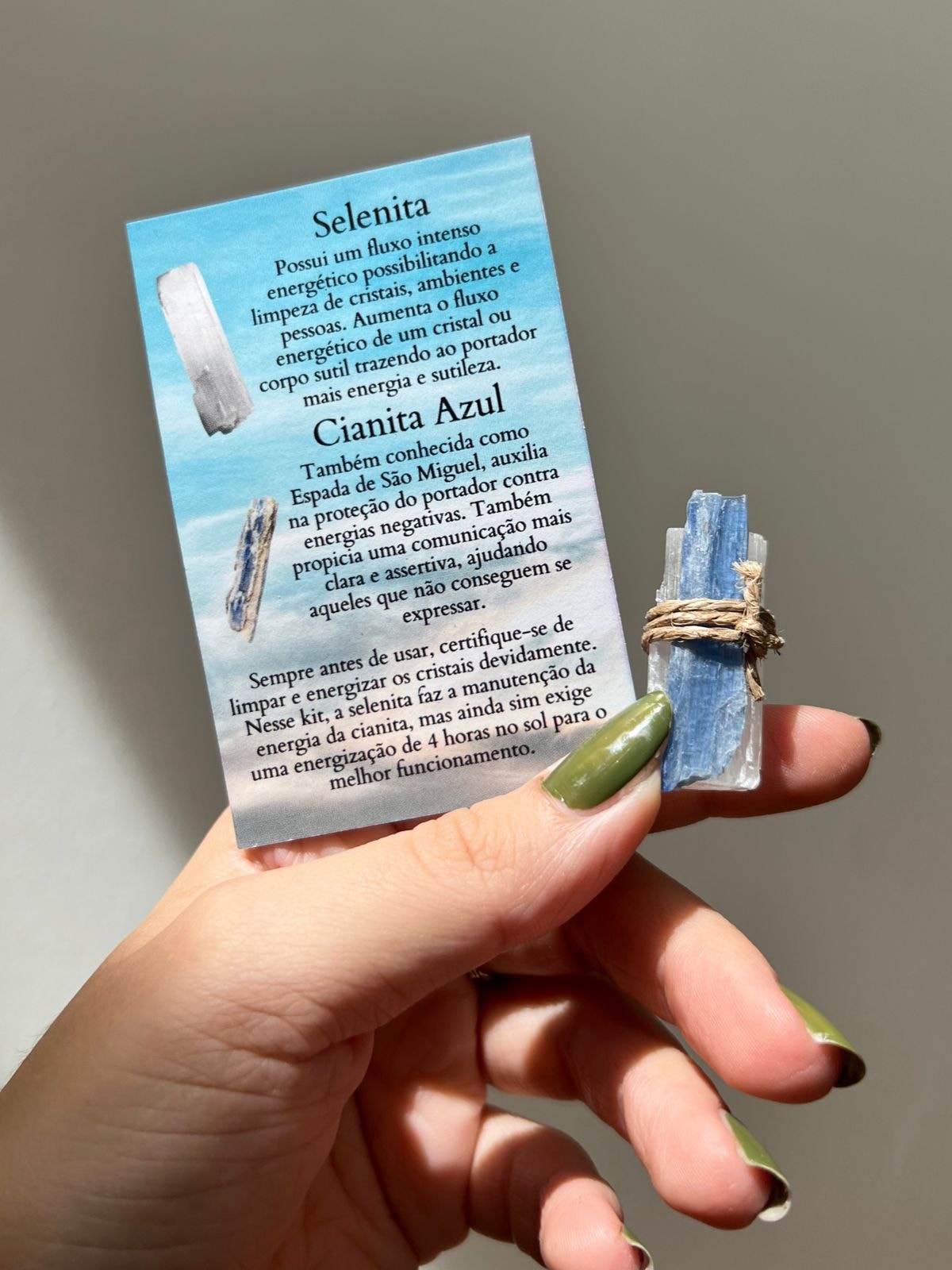 Kit com 2 cristais naturais: Selenita e Cianita Azul.