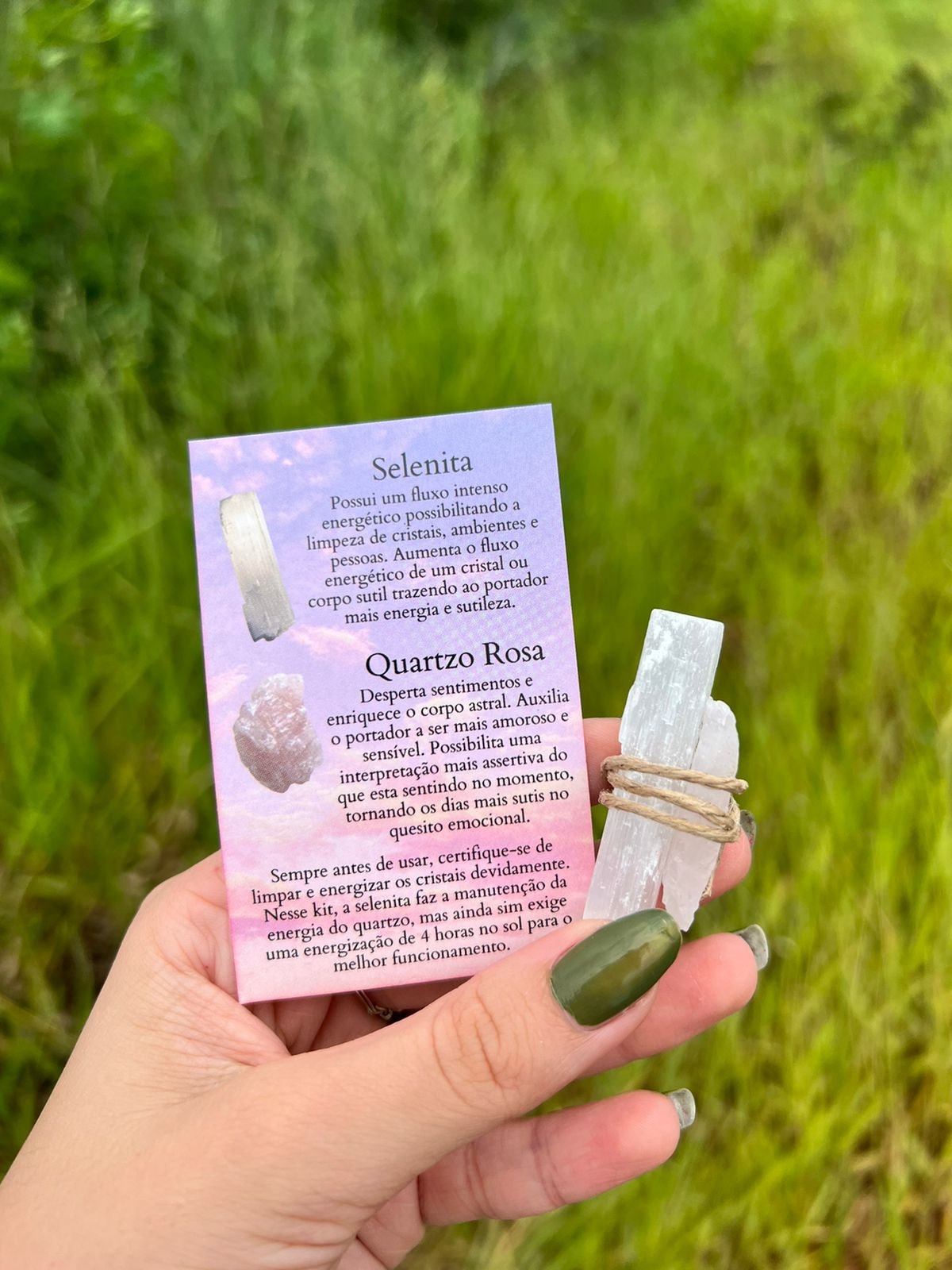 Pedras Selenita e Quartzo Rosa naturais.