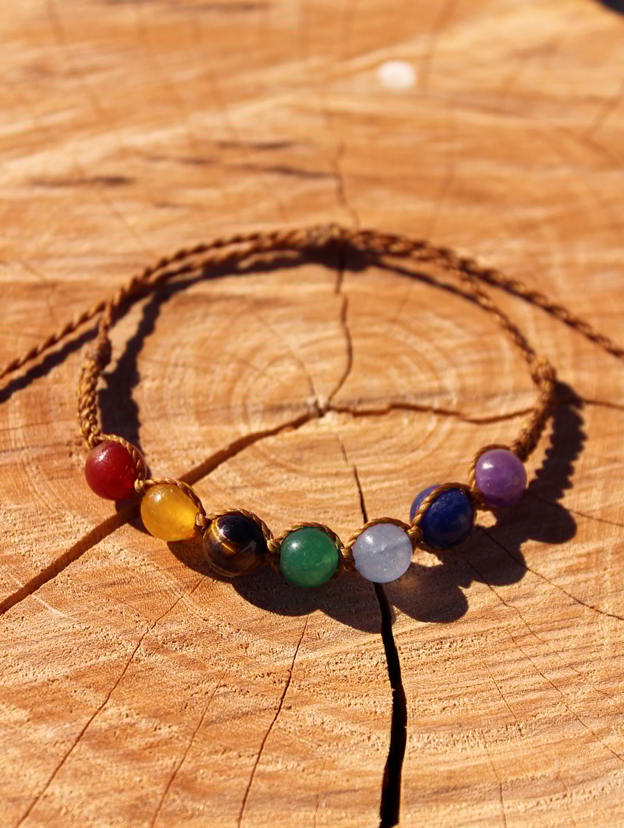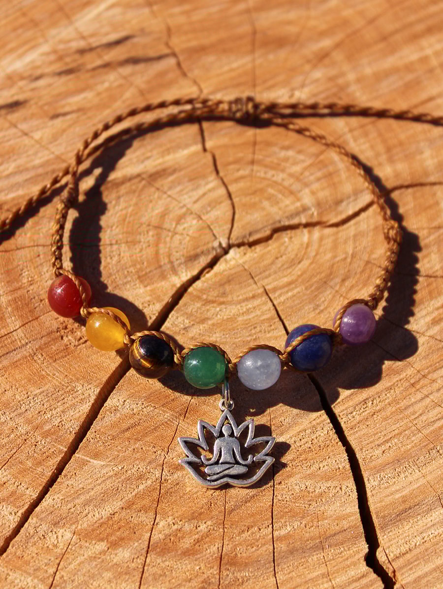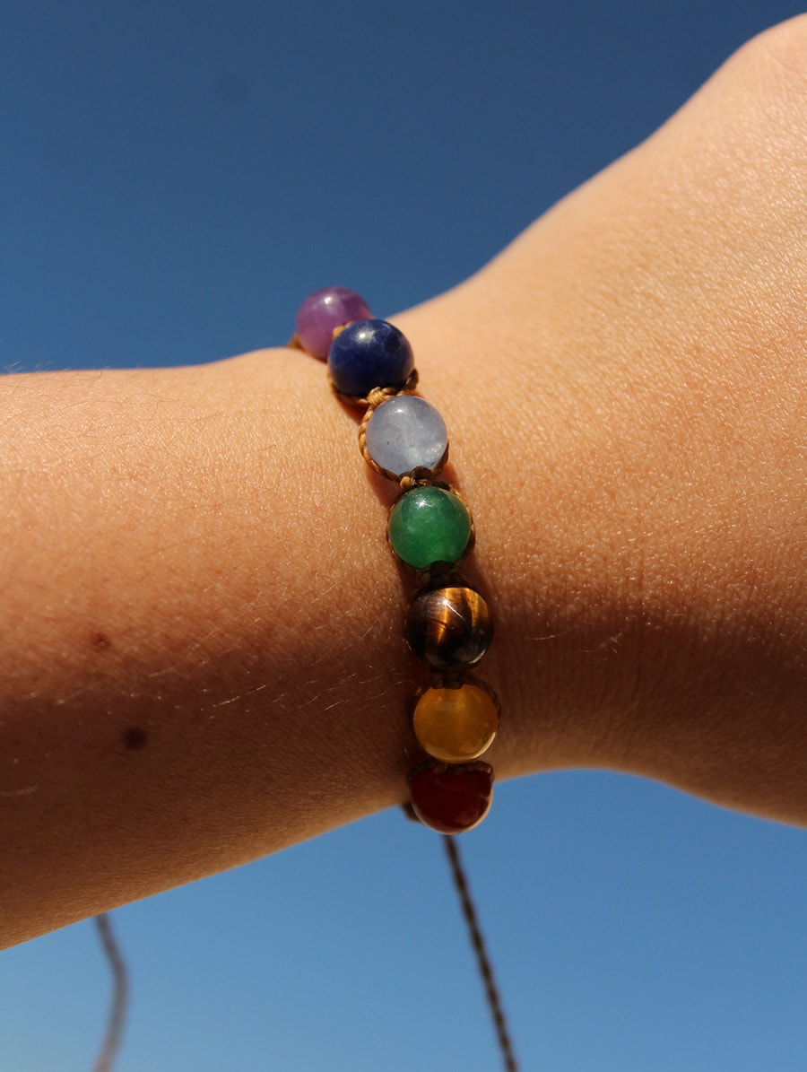 Pulseira artesanal Shambala Chakras. Cordão trançado à mão em técnica macramê.
