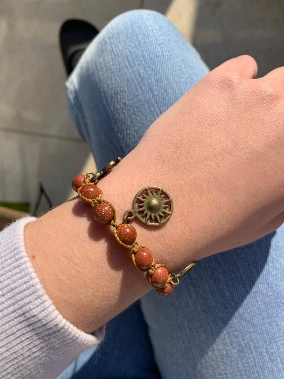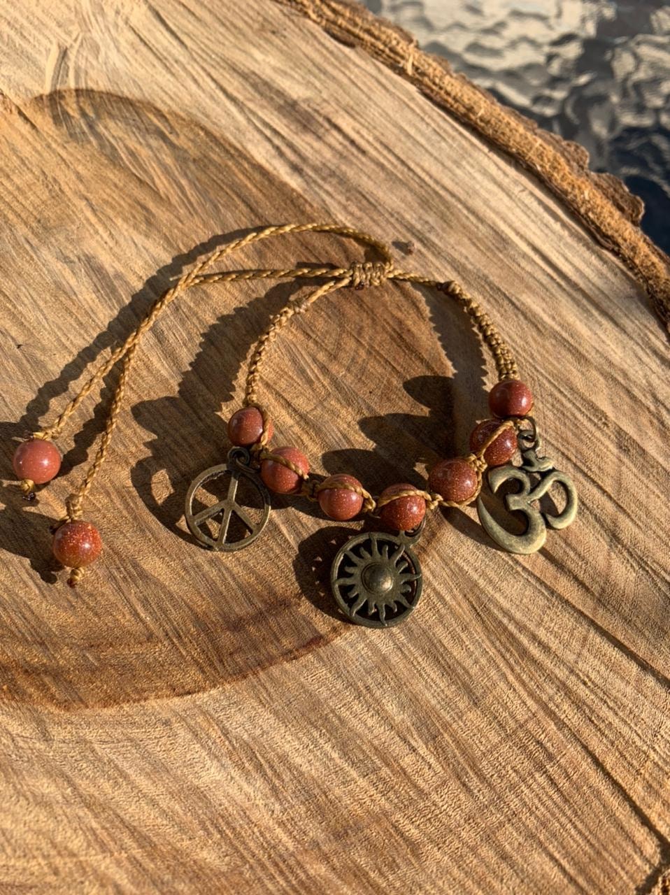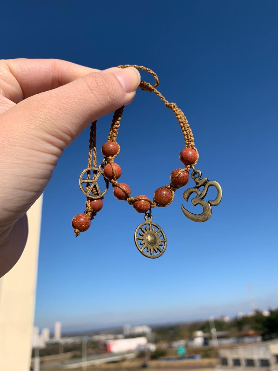 Pulseira artesanal Shambala Pedra do Sol. Cordão trançado à mão.