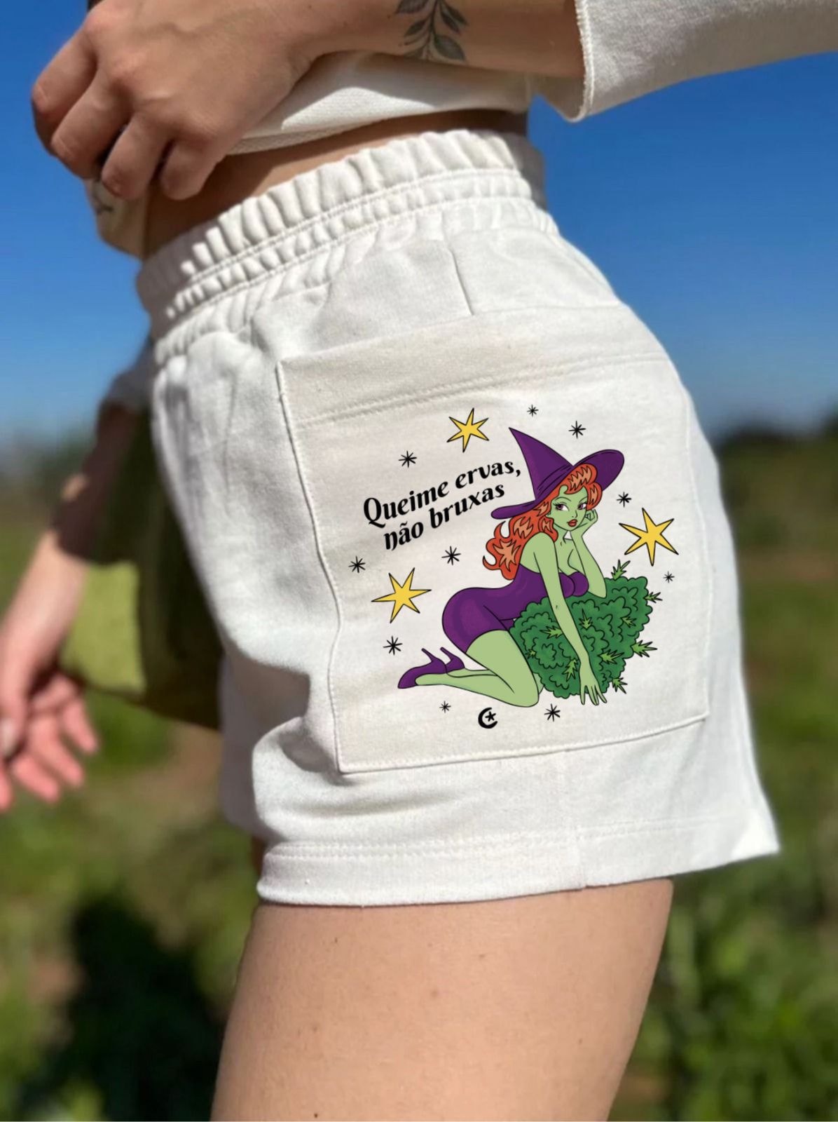 Short em moletom sem felpa. Possui 2 bolsos quadrados nas laterais e elástico na cintura.