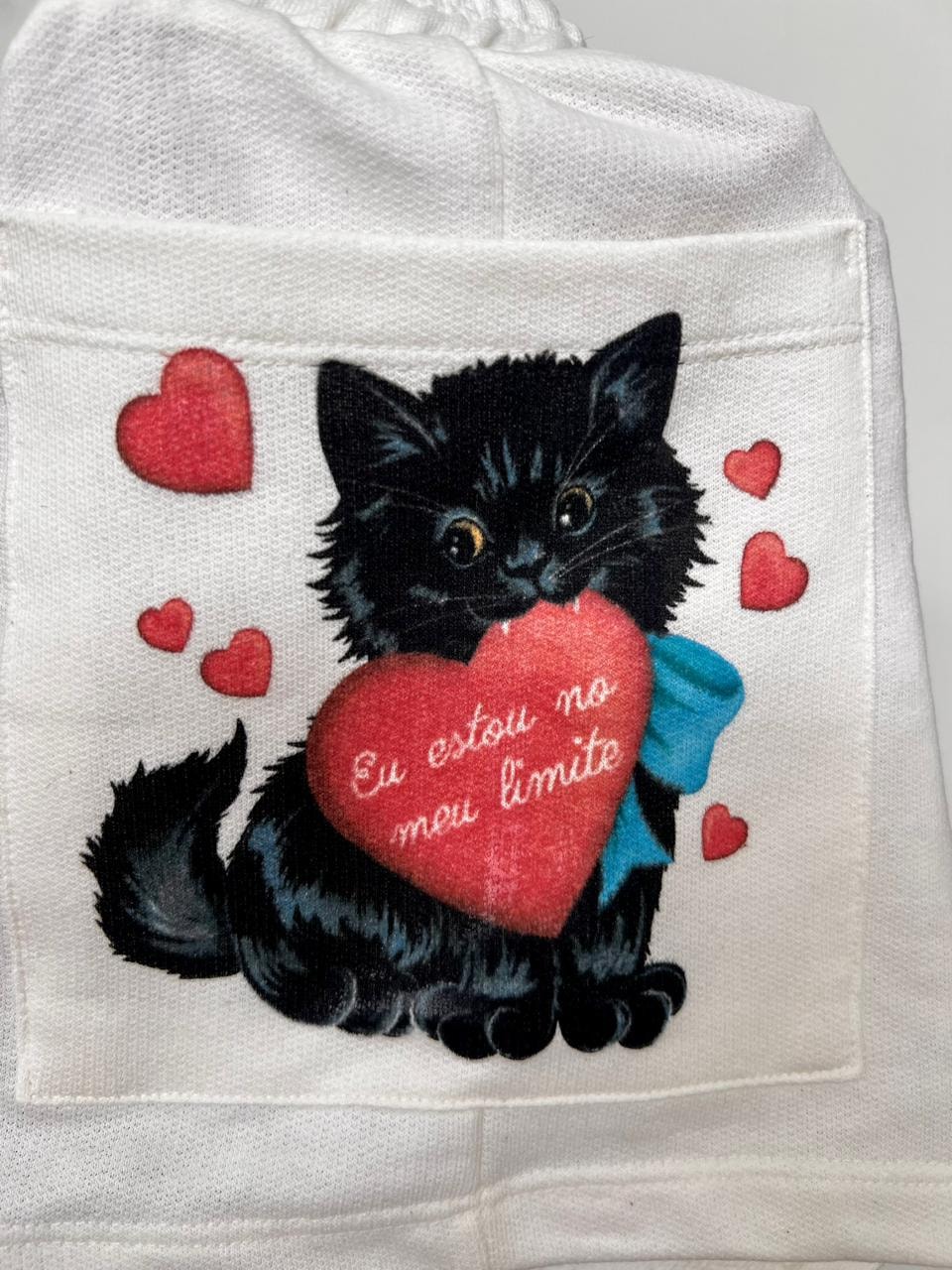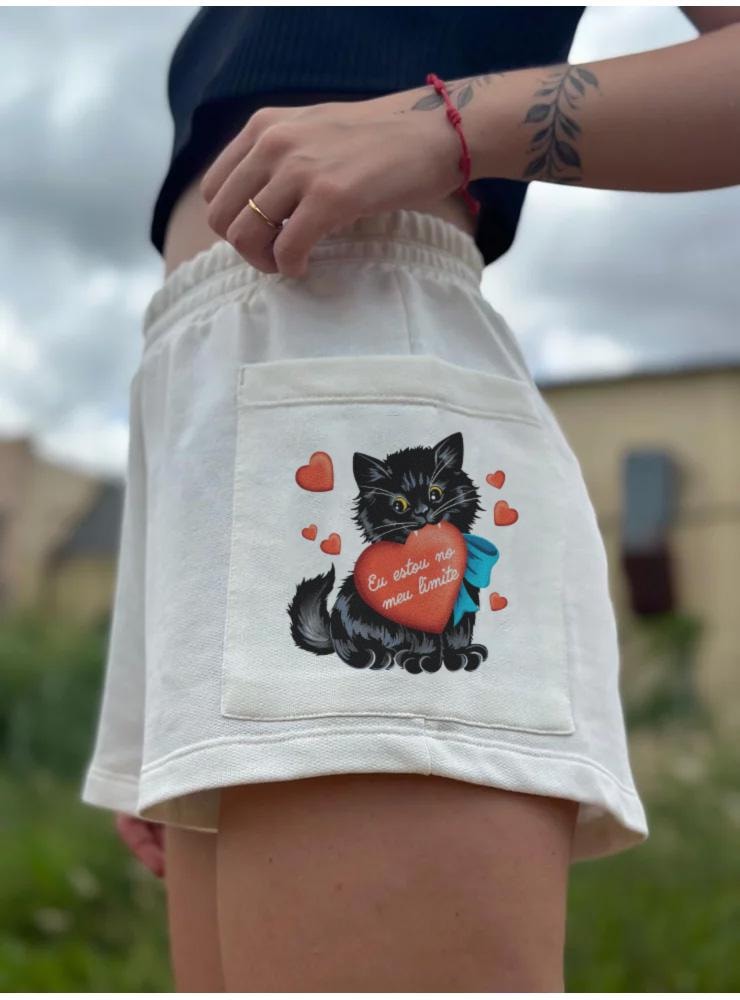 O shorts Gato No Limite tem a estética dos panos de prato de vó e representa muito todas as pessoas que vivem nesse planeta.