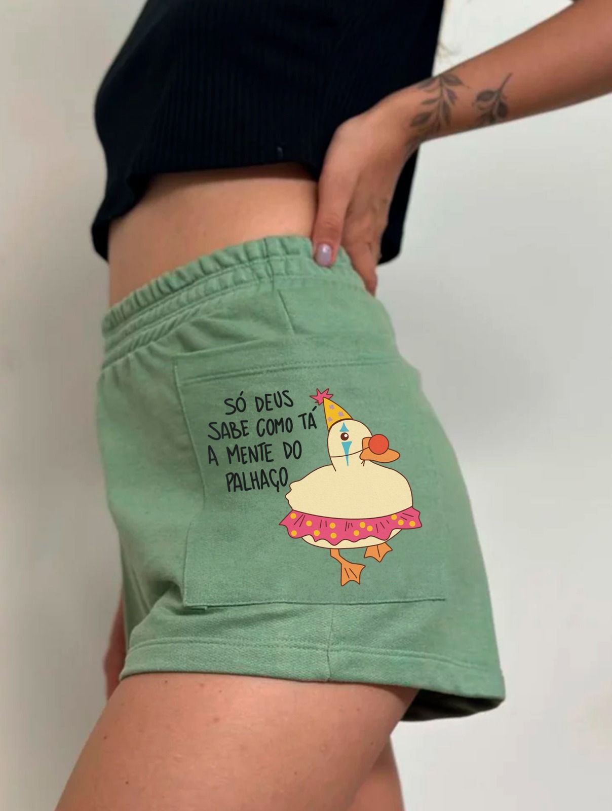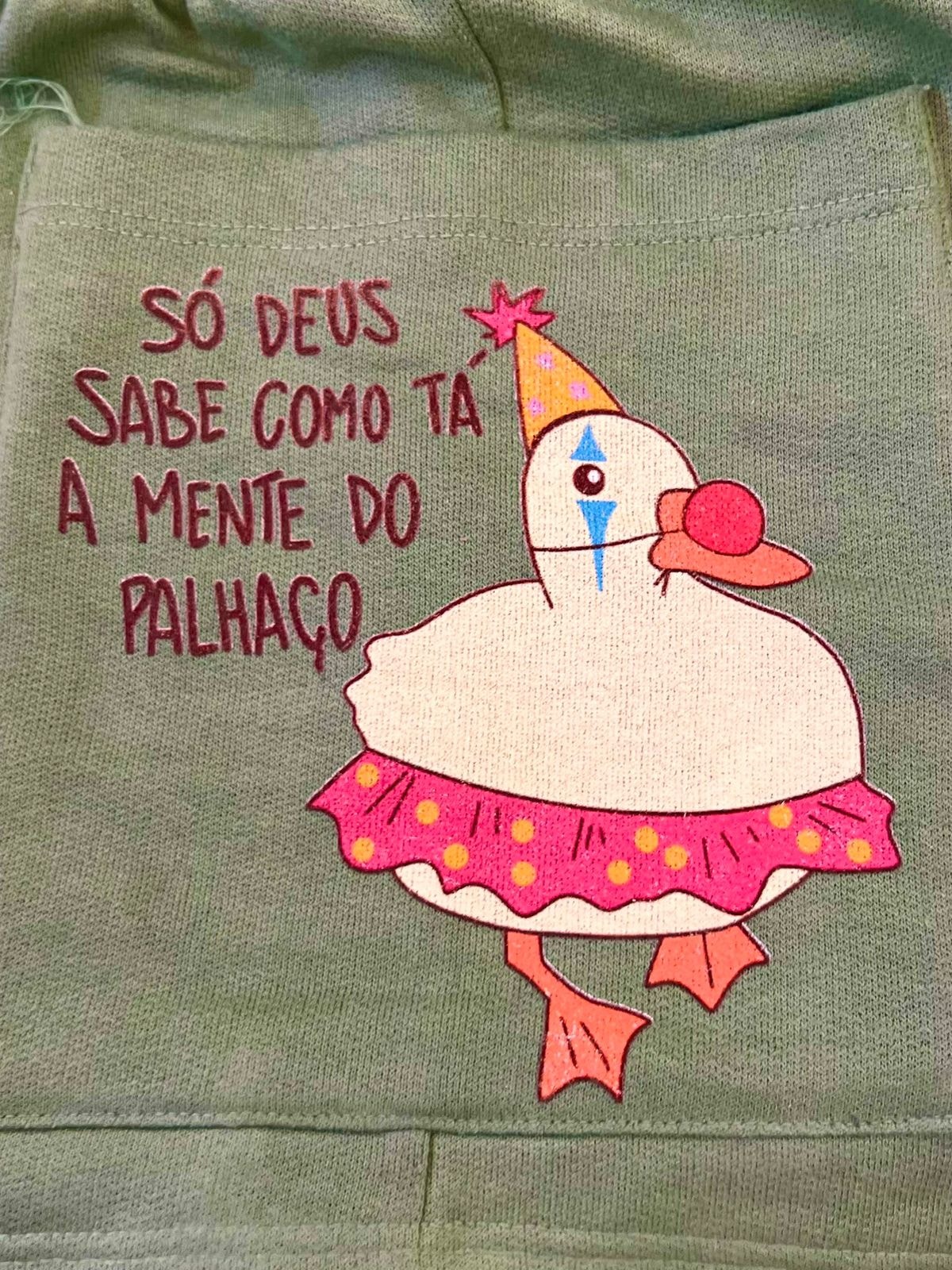 O short moletom Pato Palhaço é sobre rir das nossas próprias dificuldades e seguir em frente com bom humor.