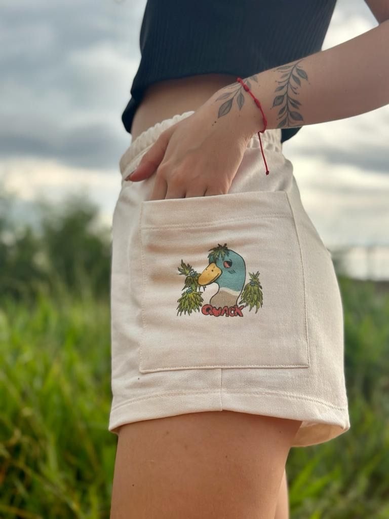 O short moletom Patos Green Club é alegre e vibrante. As cores usadas remetem à vitalidade e tranquilidade ao mesmo tempo.