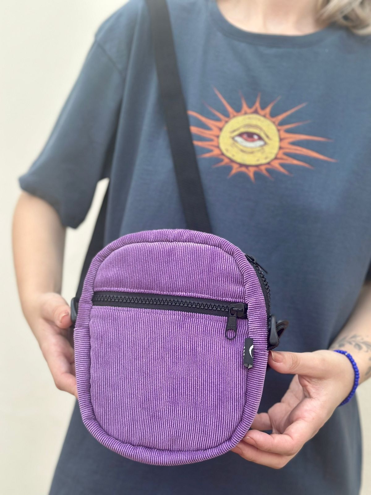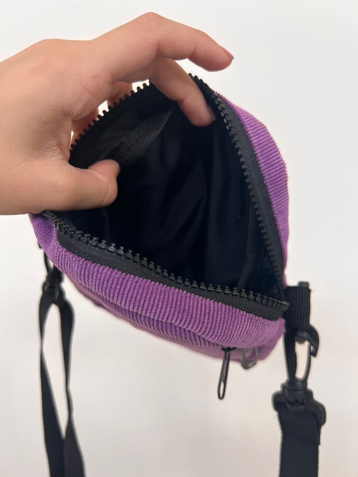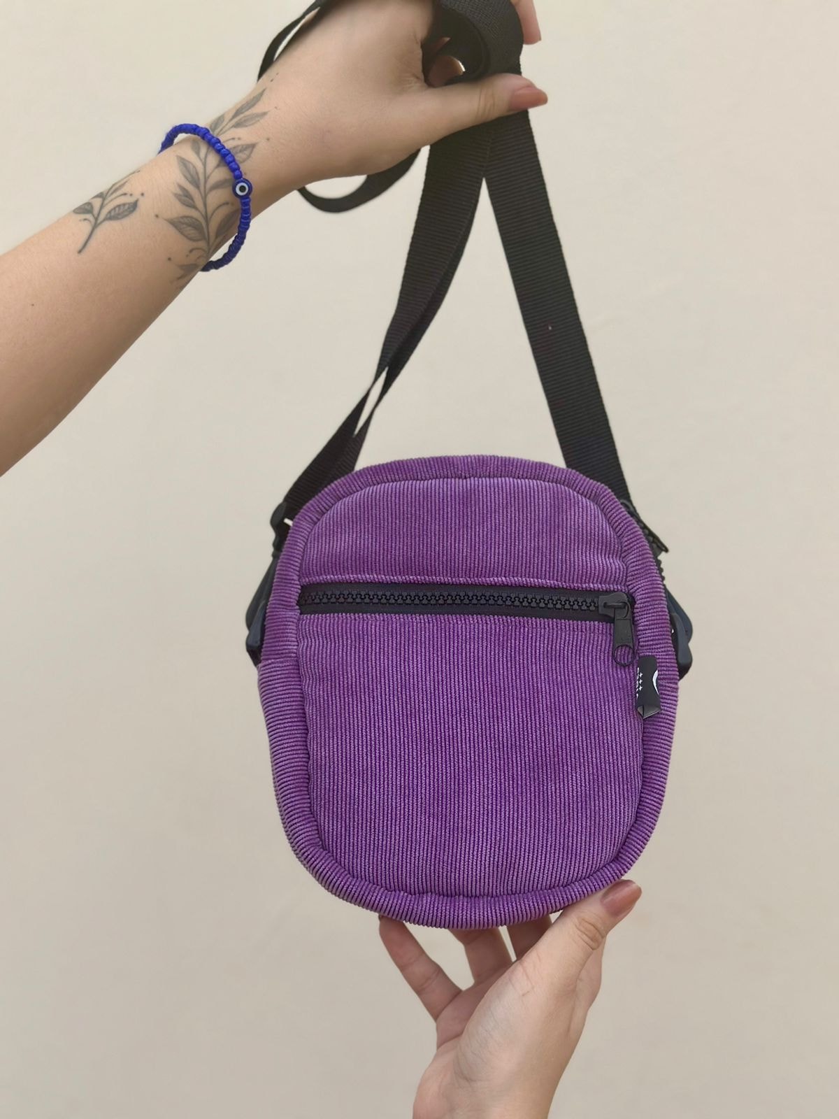 Bolsa tiracolo, com forro. Com zíper preto e prata.