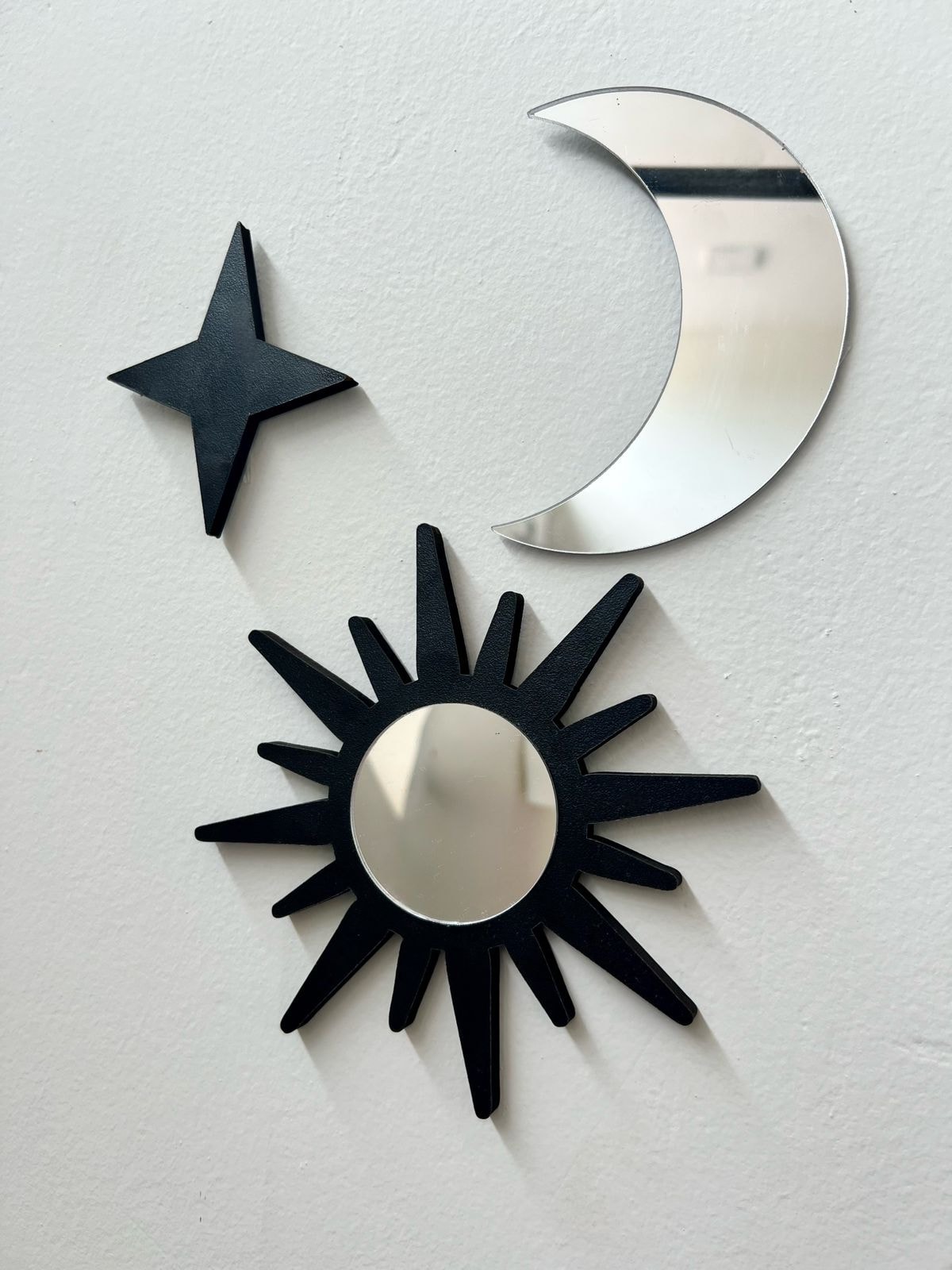 Kit com 2 espelhos e 1 item decorativo em formato de estrela.