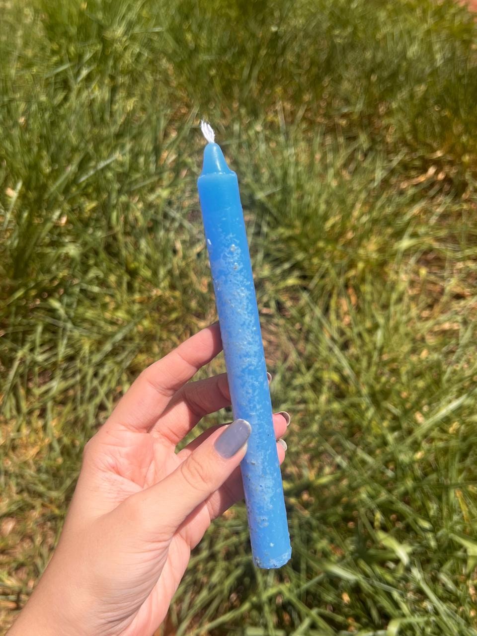 A papoula simboliza a paz, o renascimento espiritual e a conexão com o divino. A cor azul significa tranquilidade, serenidade, harmonia e espiritualidade. Por atrair essas forças, é uma vela muito recomendada para acalmar a mente e focar em suas responsabilidades.