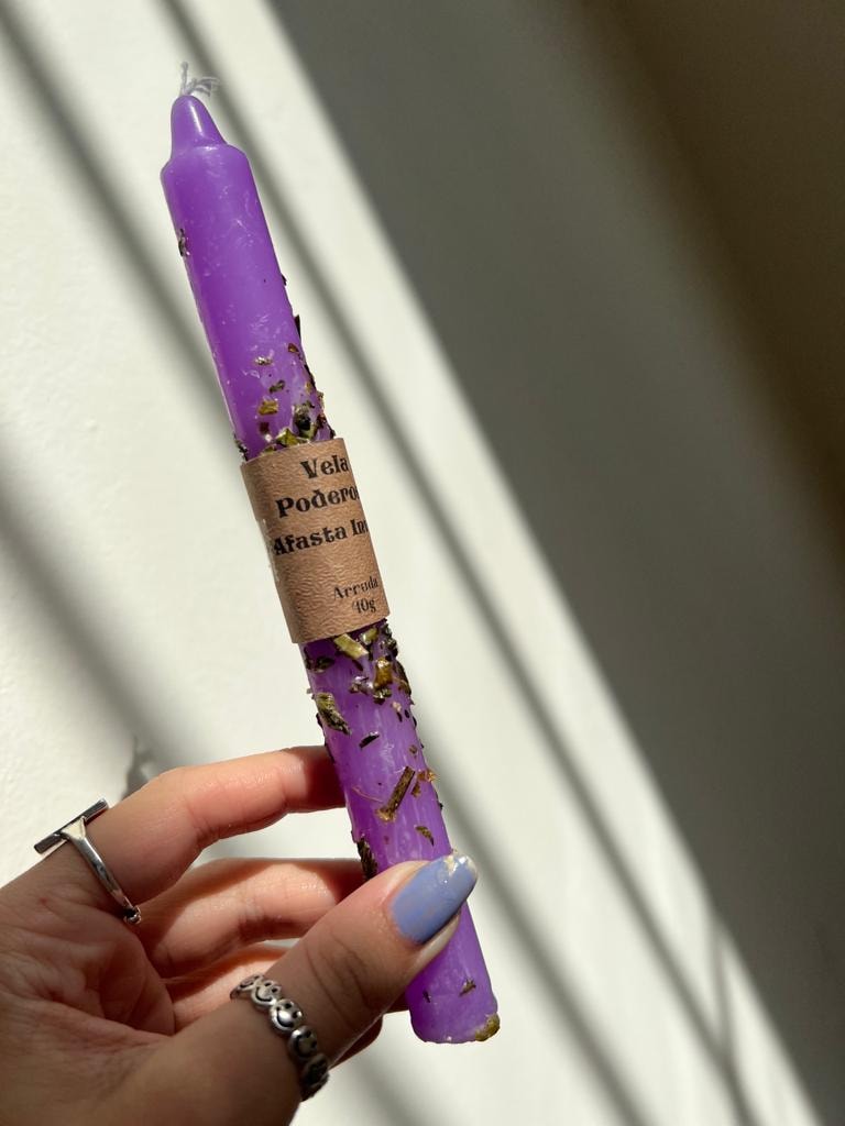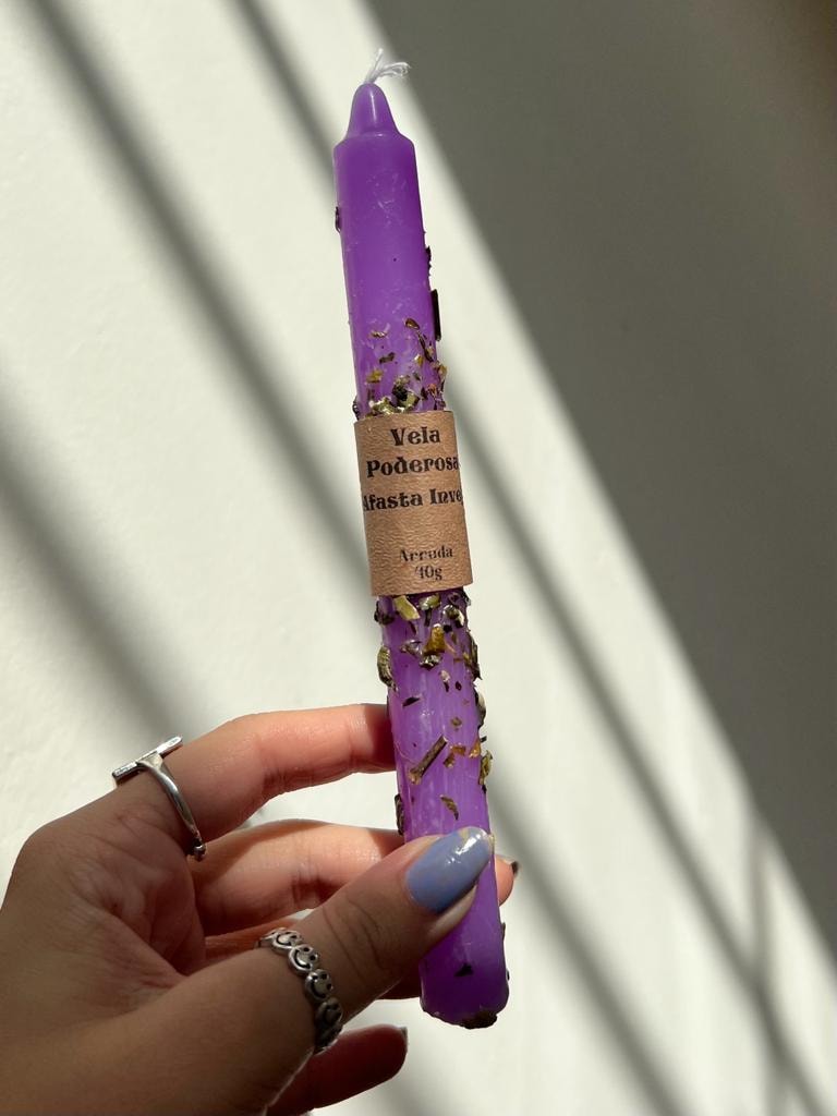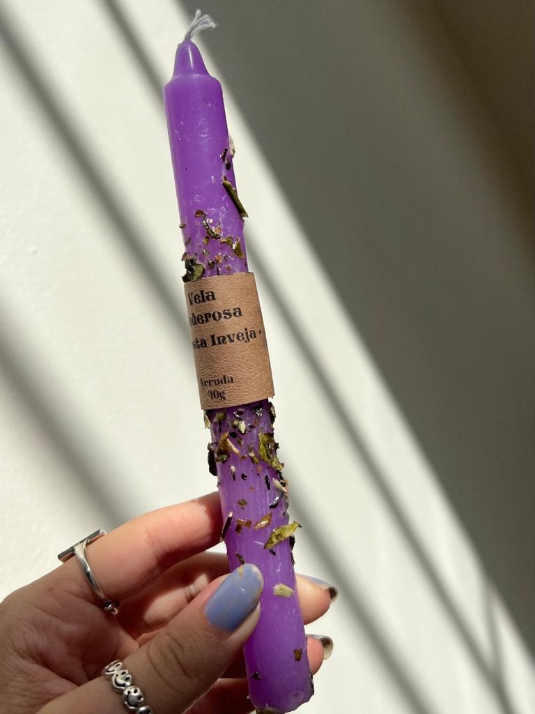 A arruda é uma planta usada há séculos para rituais sagrados e benzimentos. Seu nome científico tem origem grega e significa Salvador. É uma ferramenta poderosa para afastar más energias. A cor roxa remete à mágia, à sabedoria e à intuição.