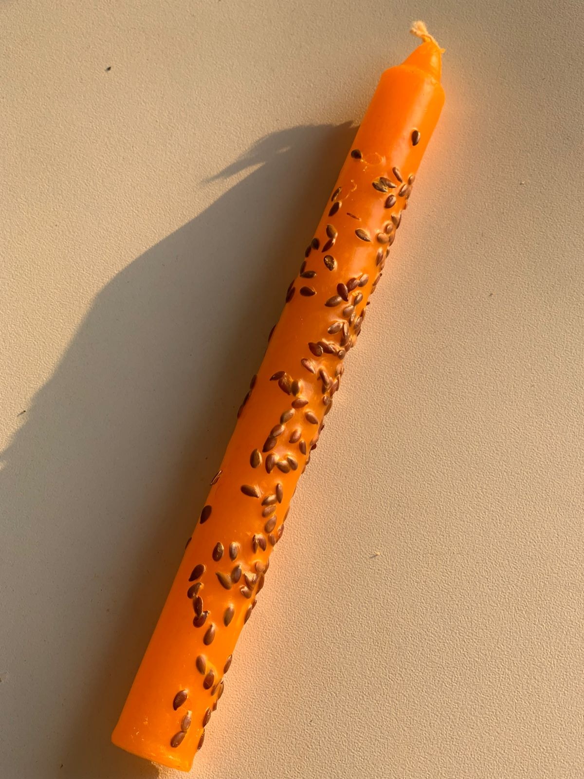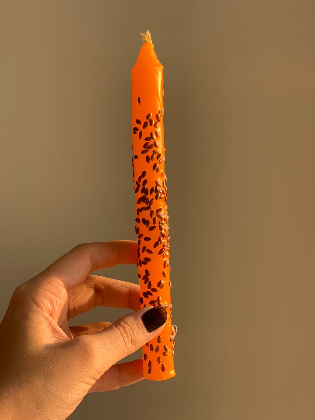 Na mitologia grega, a linhaça era associada à pureza e fertilidade. Para os romanos, simbolizava riqueza e prosperidade. A cor laranja remete à vitalidade, alegria e bem-estar. A vela laranja com linhaça é uma ferramenta poderosa para atrair sorte. Ao acender a vela, coloque sua intenção na área da sua vida em que você deseja encontrar a sorte.