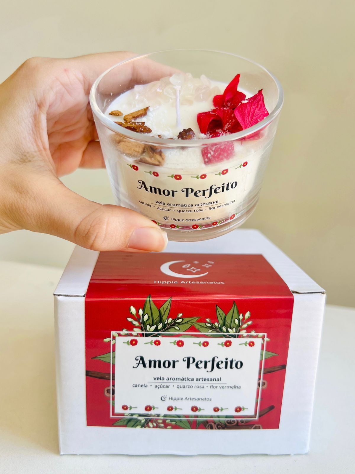 Composição: Açúcar, Canela, Quartzo Rosa e Flores Vermelhas.