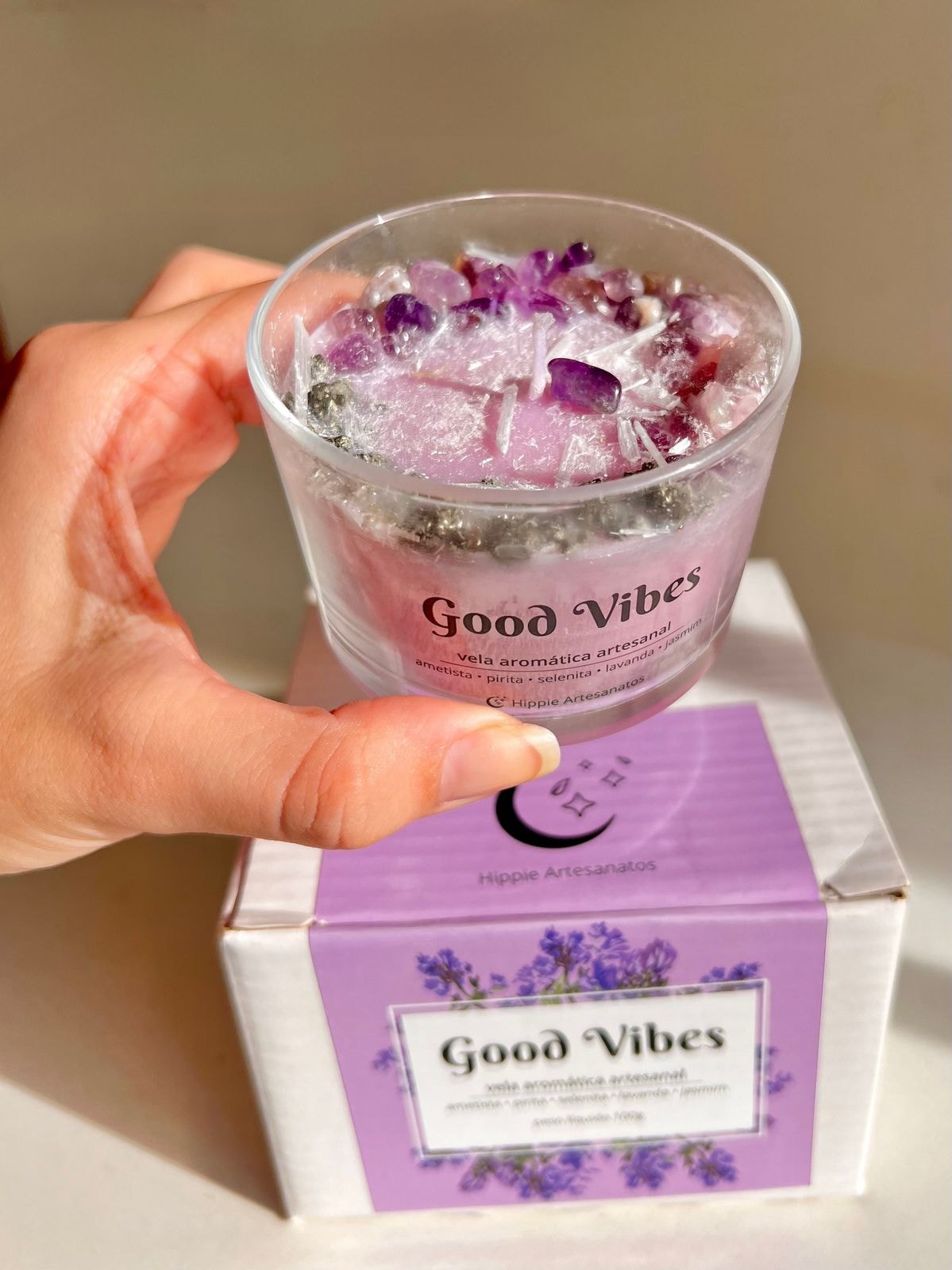 A Vela Energética Good Vibes é perfeita para atrair ou manter a boa energia no ambiente. Sua cor lilás simboliza pureza, tranquilidade e serenidade. Os elementos da Vela Energética Good Vibes, combinados, são agentes poderosos de atração de positividade.