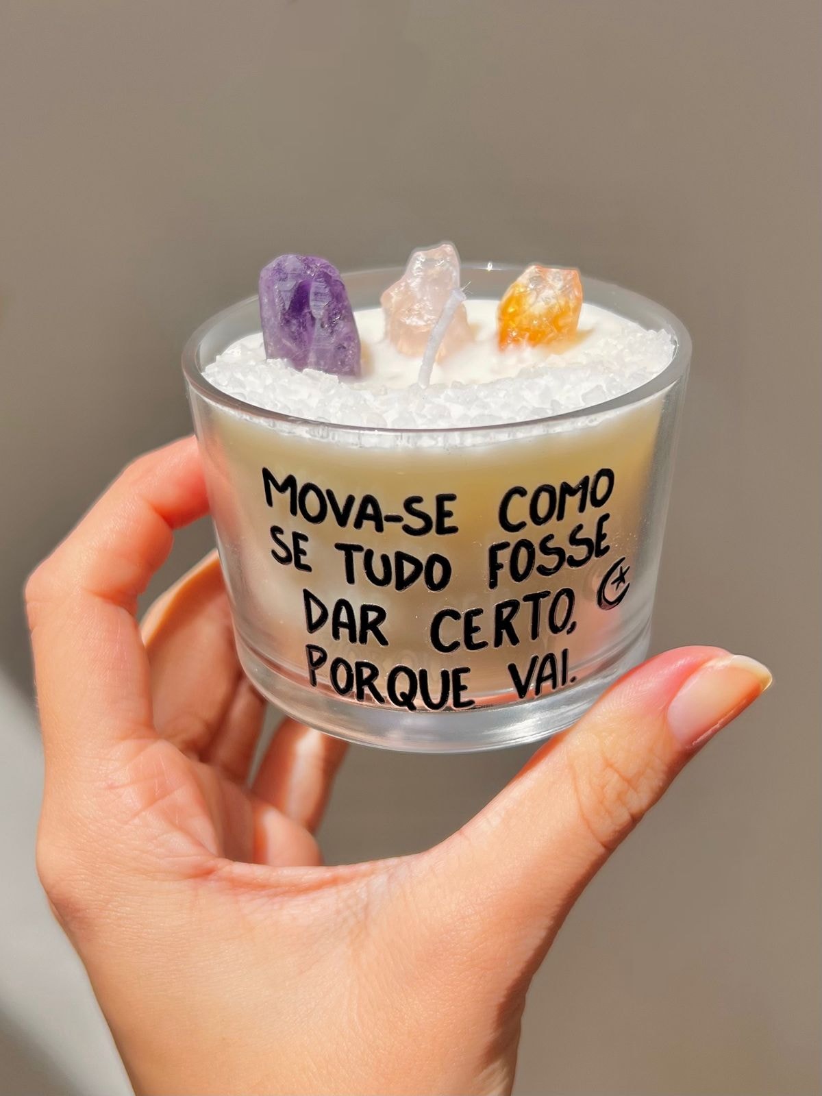Composição: Pedras: Citrino, Ametista e Quartzo Rosa e sal grosso.