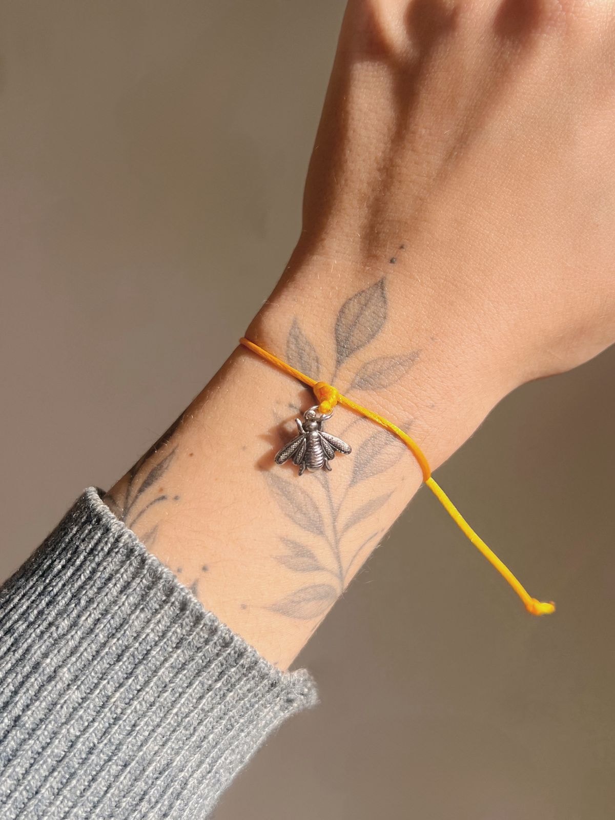 Acompanha pulseira com pingente de zamak e cordão de cetim.