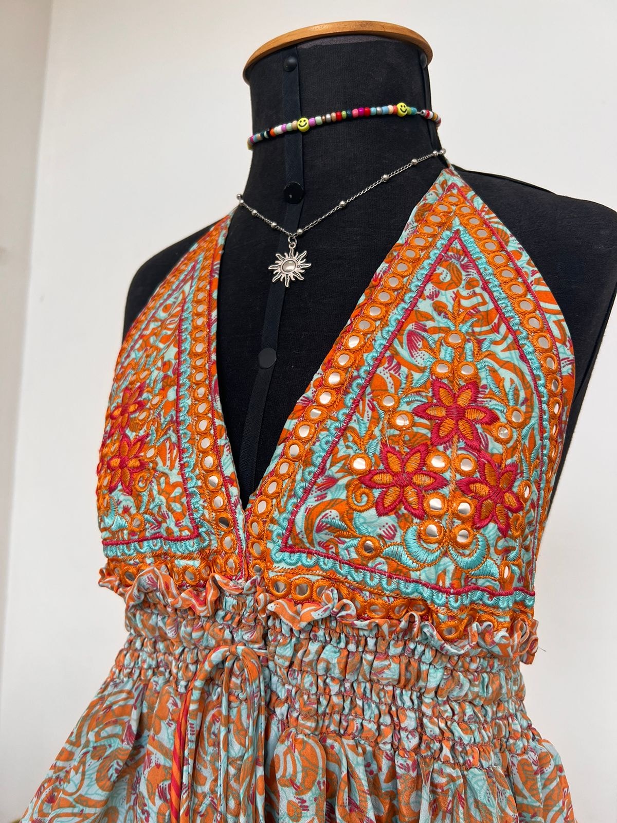 Busto com elástico e alças ajustáveis. Importado da Índia.